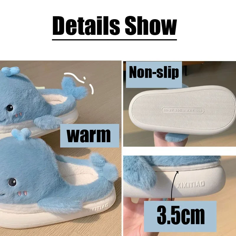 2023 симпатичные Тапочки с мультяшным Китом, женские пушистые меховые тапочки, домашняя обувь на платформе, зимние шлепанцы с животными из пены с эффектом памяти для мужчин
