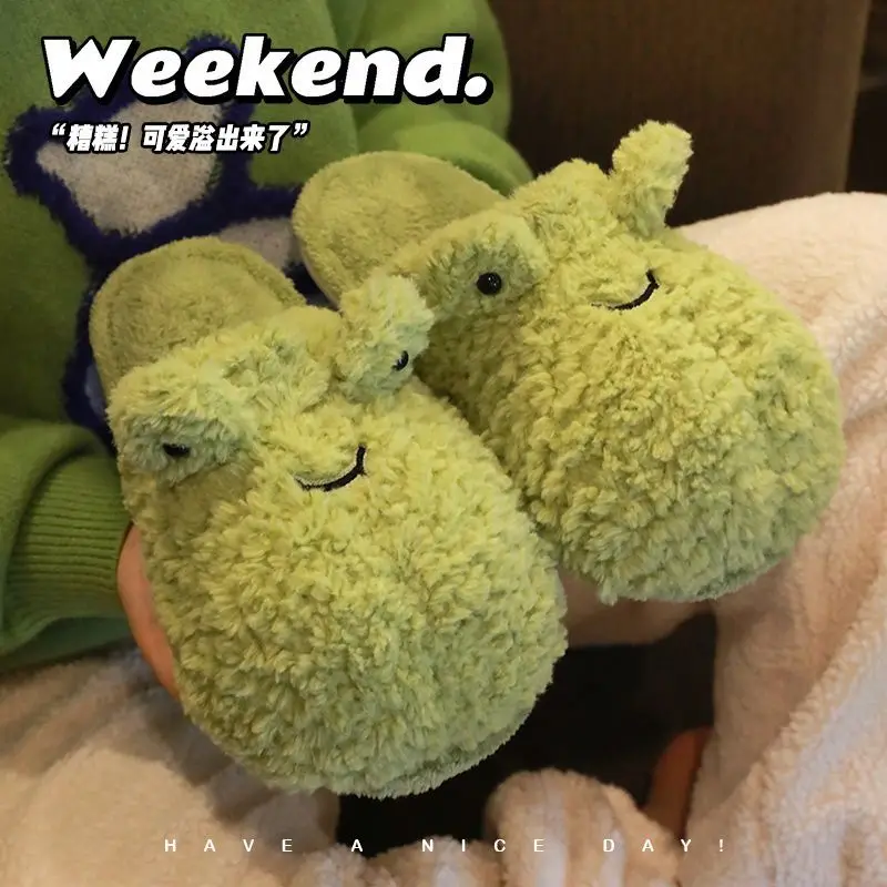 Зимние Нескользящие теплые тапочки для дома и пары, с мультяшным принтом
