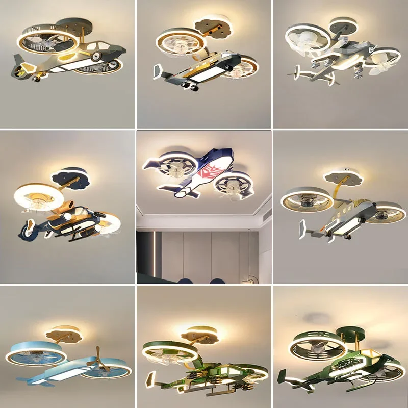 Детский летательный аппарат, лампа-веер с дистанционным управлением, модель мультяшного боевика для мальчиков, потолок для спальни