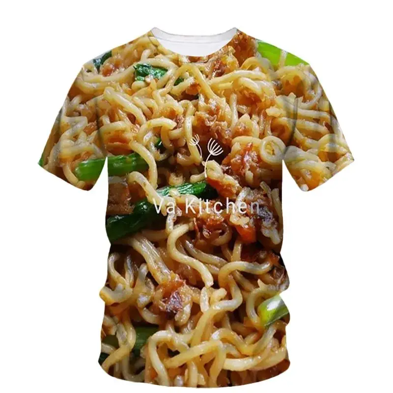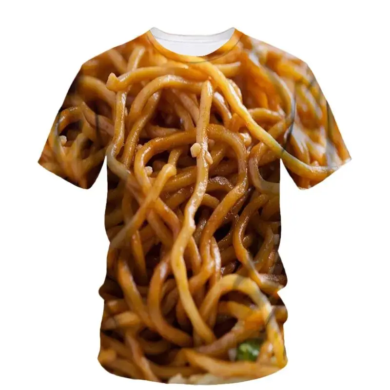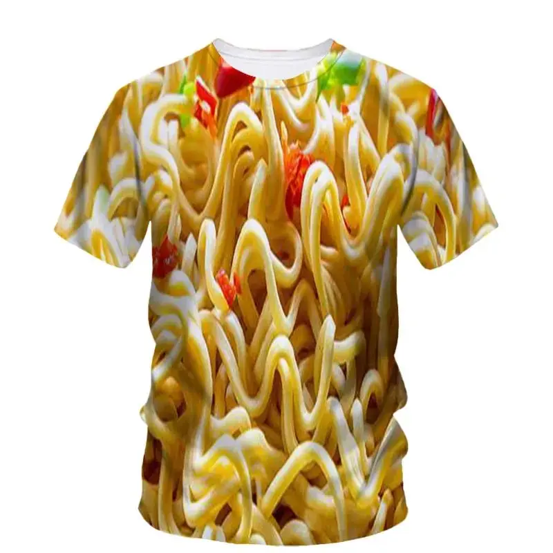 Футболка мужская Свободная с круглым вырезом, Модная креативная рубашка с коротким рукавом, с 3d принтом в виде лапши, развлекательная модель, лето