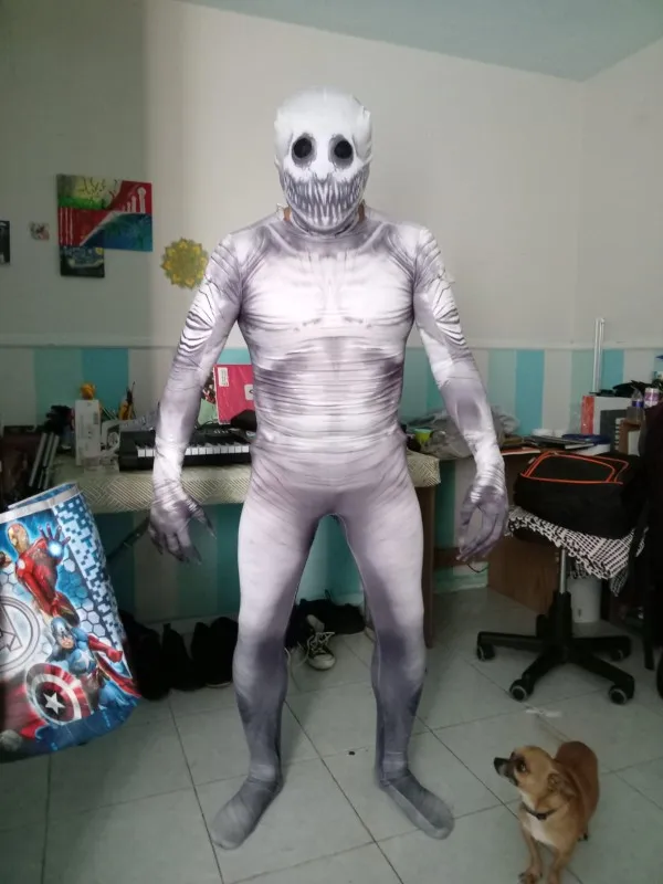 Не было отверстий в носу и рту, так что было много дышать. Но было приятно иметь Сетчатое отверстие в глазу. И мне понравился принт на обратной стороне костюма. Я думаю, что большинство из них хорошо носят размер m, потому что они очень хороши. Доставка также была на несколько дней быстрее, так что все было хорошо.
