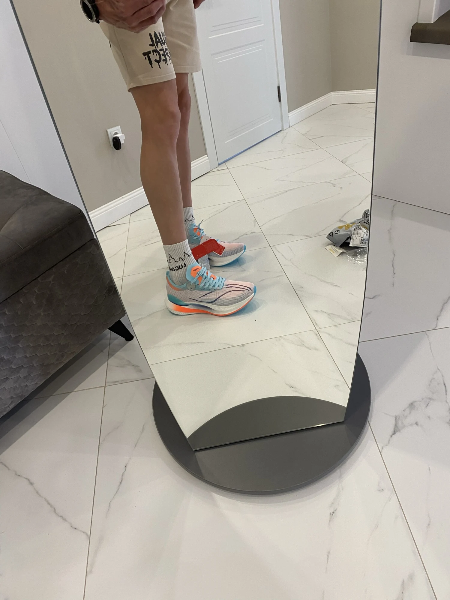 тот случай, когда ожидание и реальность совпали! мягкие, качественные, легкие, не жарко. Нога узкая, подьем не высокий, длина стопы 270 мм, размер кросовок 9.5 есть хороший запас( как раз для бега). Что по бегу... это мои первые беговые кросовки.. непривычно, высокие.. с одной стороны амортизация хорошая, с другой стороны нужно постоянно контролиловать стопу, суставы в них работают просто как шарниры.. вся нагрузка чисто на мышцы и связки.. это и хорошо и опасно.. Однозначно, рекомнндую.