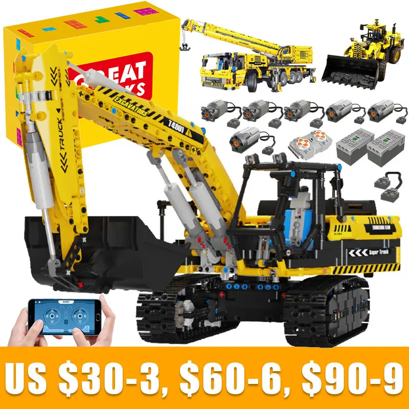 Технический автомобиль экскаватор APP пульт дистанционного управления Мотор мощность T4001 Кирпичи Строительные блоки инженерный грузовик игрушки Дети Moc наборы подарок