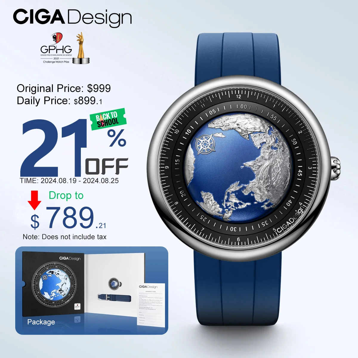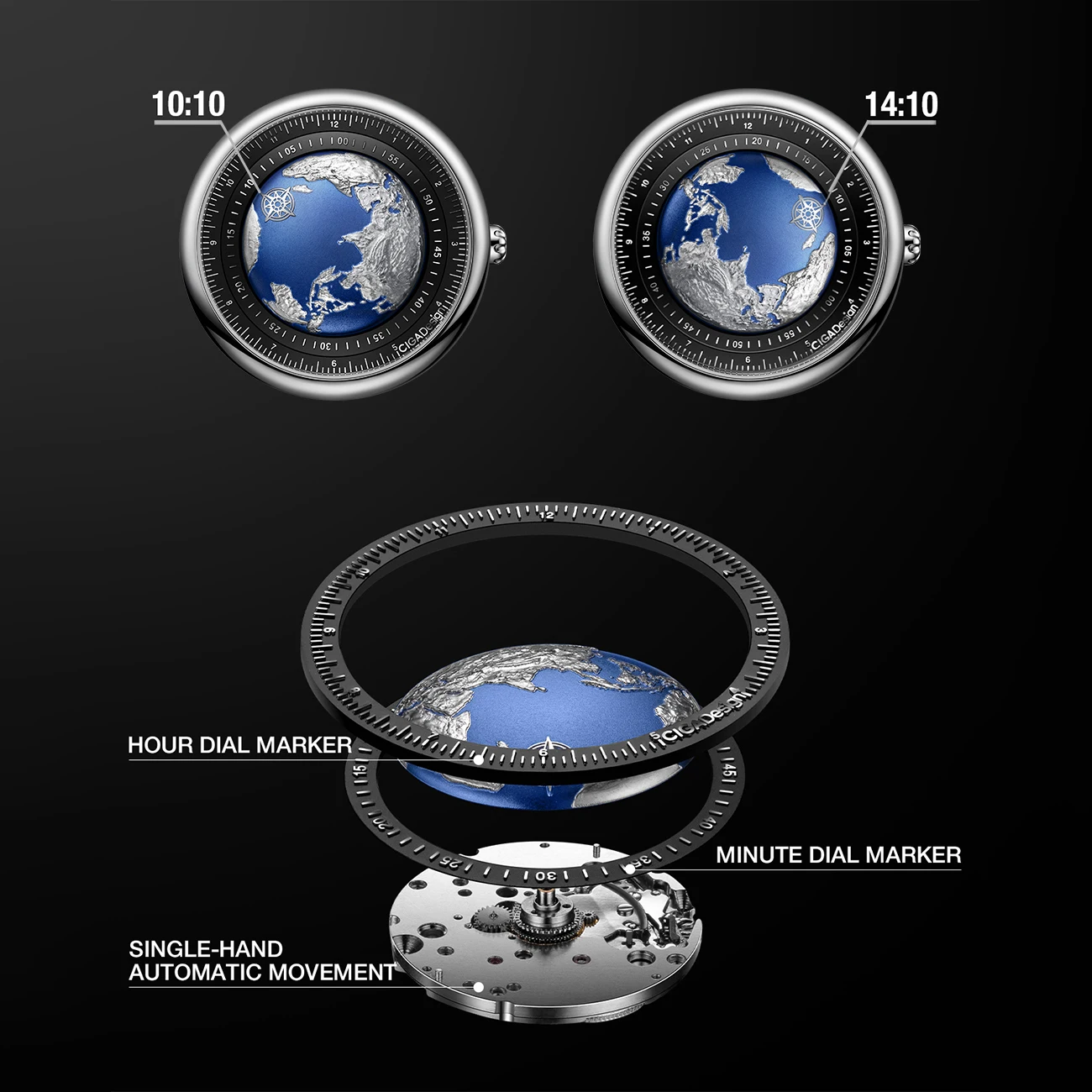 CIGA Design механические часы мужские, с синей планетой для мужчин и женщин, Роскошные наручные часы из нержавеющей стали/титана