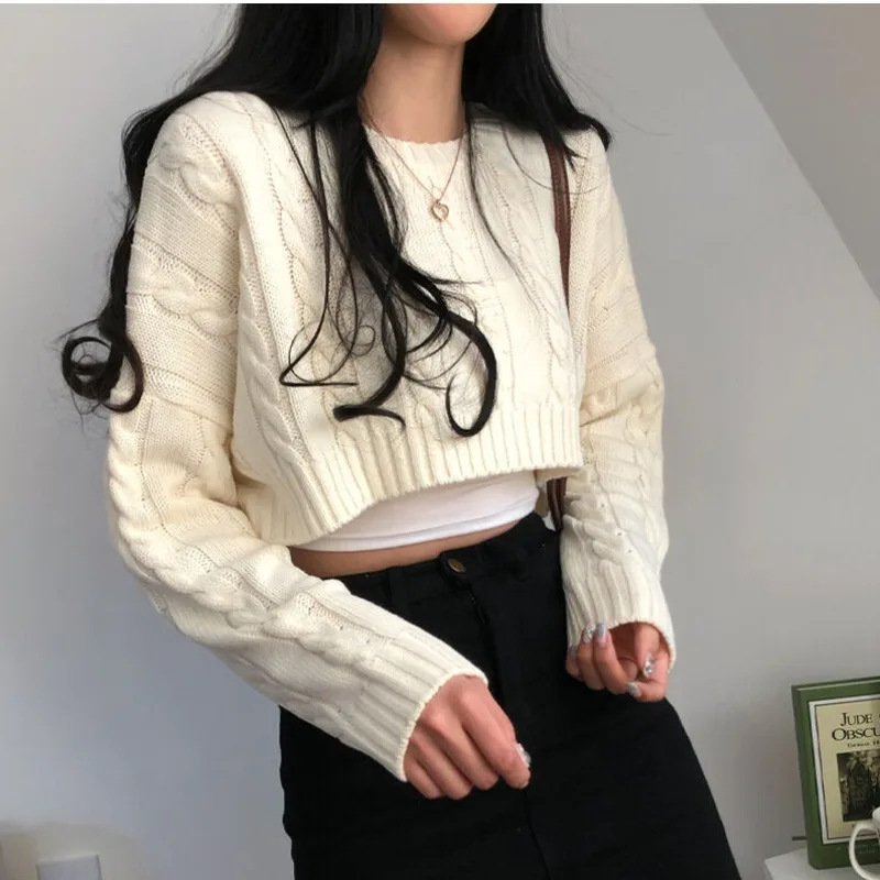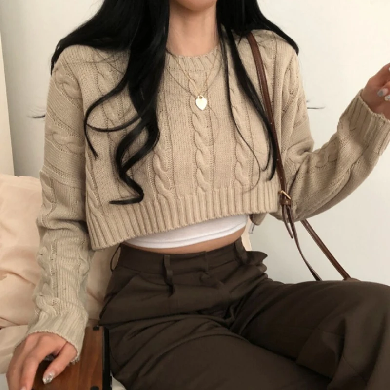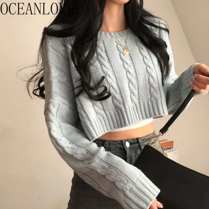 Короткий женский пуловер OCEANLOVE, однотонные осенне-зимние корейские шикарные универсальные свитера, Простой повседневный Модный пуловер, женский зимний