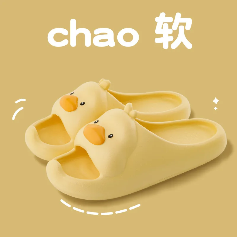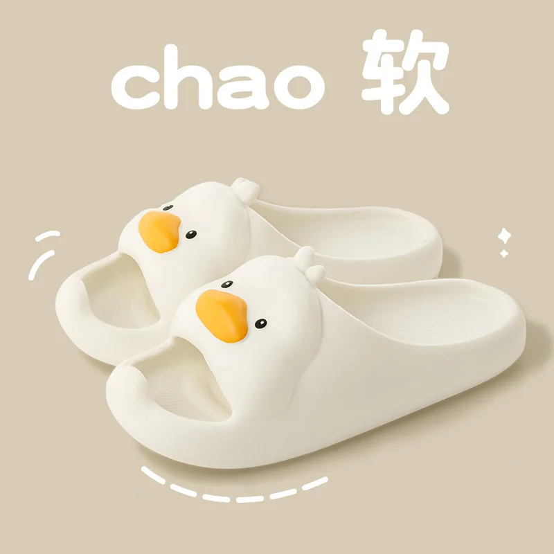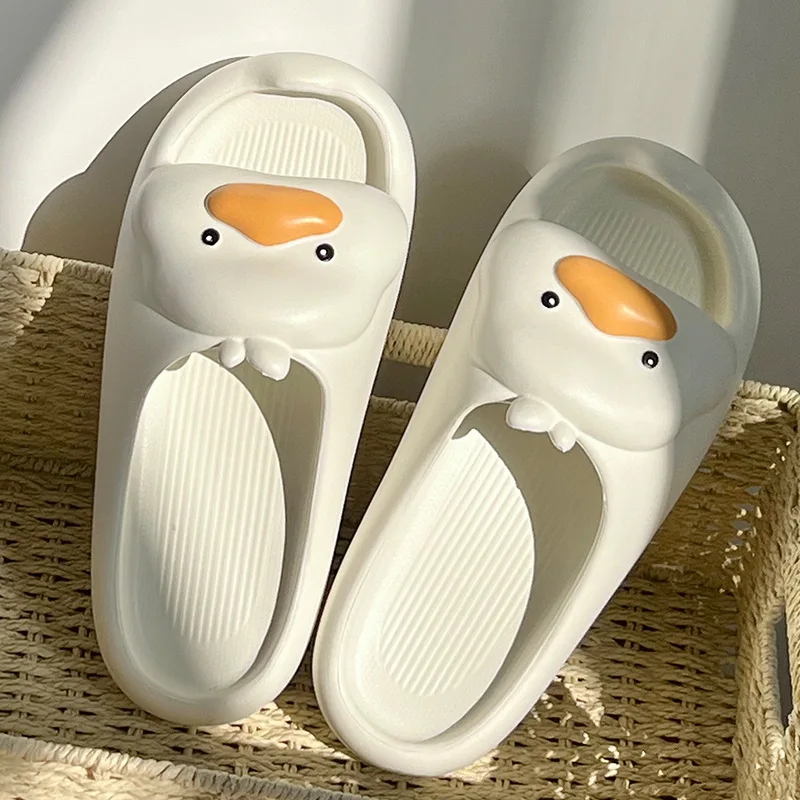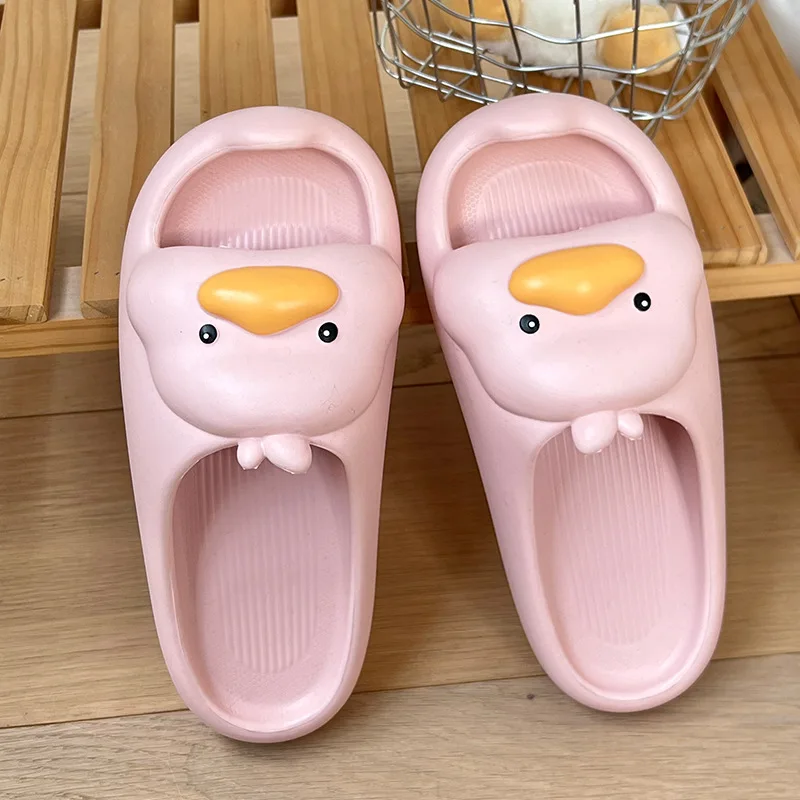 Летние шлепанцы для женщин, новинка 2024, дышащие уличные женские домашние сандалии, женские Симпатичные шлепанцы с мультяшным рисунком, утки, сплошные Тапочки