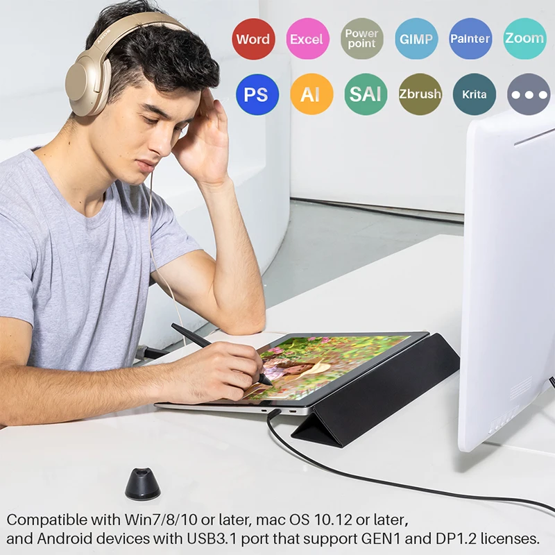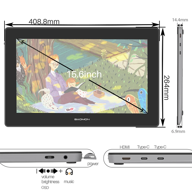 Графический планшет GAOMON PD1621, монитор 4K IPS, цифровой планшет, дисплей 15,6 дюйма с сенсорным экраном 10 пальцев, Кожаная подставка