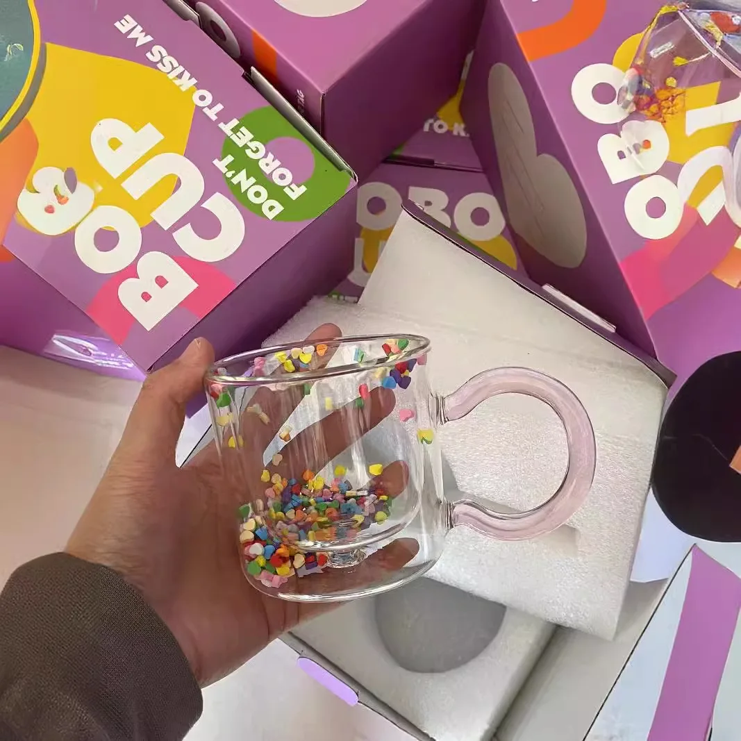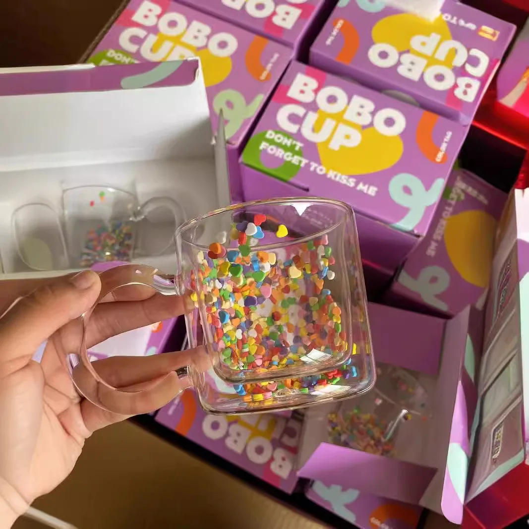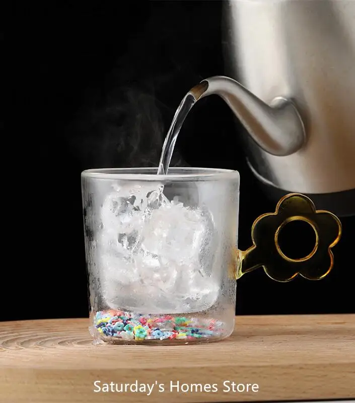Двухслойная чашка для воды из боросиликатного стекла, милая ручка из подсолнуха, чашка с алмазными зыбучими песками, фестиваль, деловой подарок