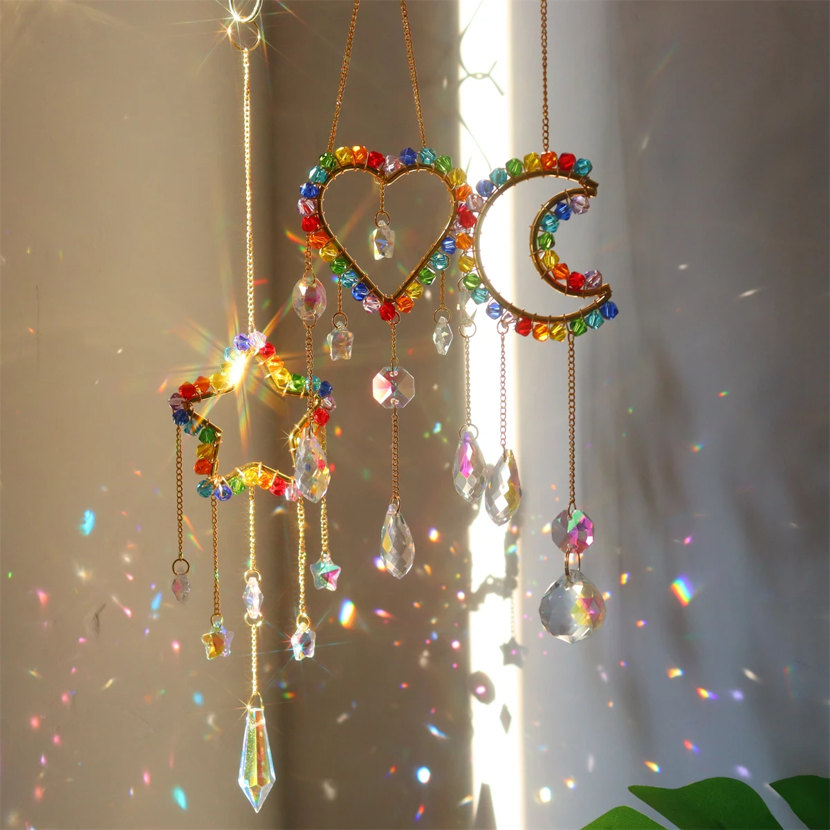 Украшения Ремесла Радуга Кристалл Ловцы Солнца Окно Висит Ловец Солнца Сердце Луна Звезда Радуга Домашний Декор Колокольчики Висячие