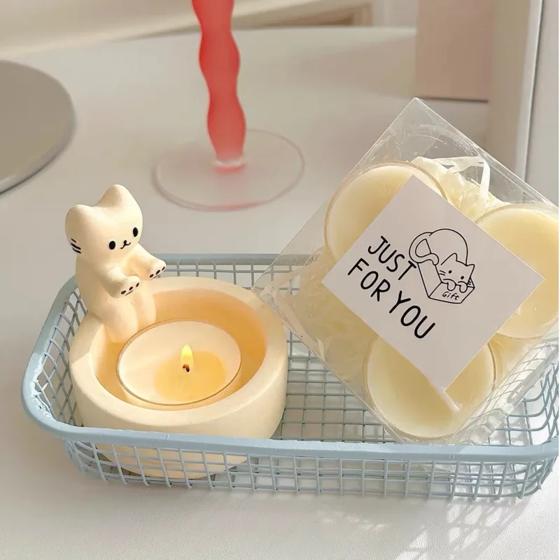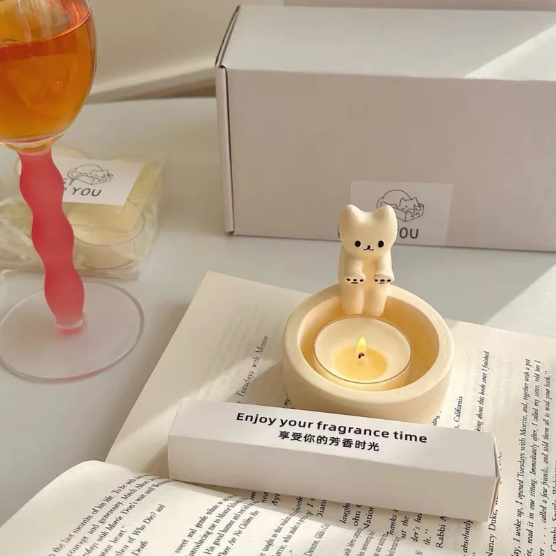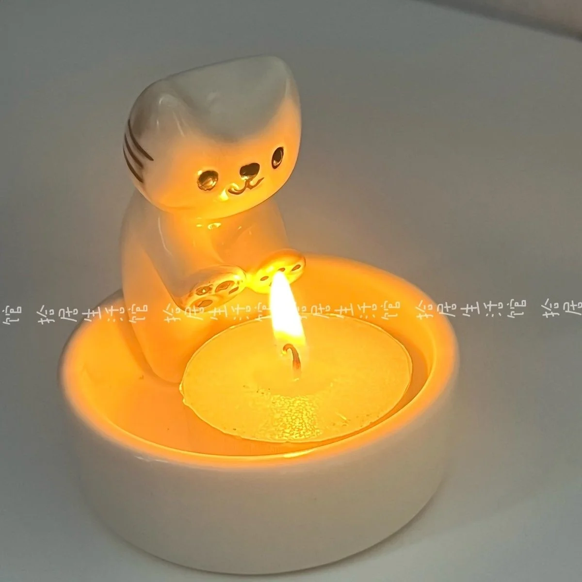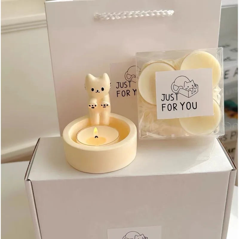 Подсвечник с изображением котенка, ручная работа, милая подсвечник с ароматерапией, белый персиковый Улун/bluebell /Pears и Freesias
