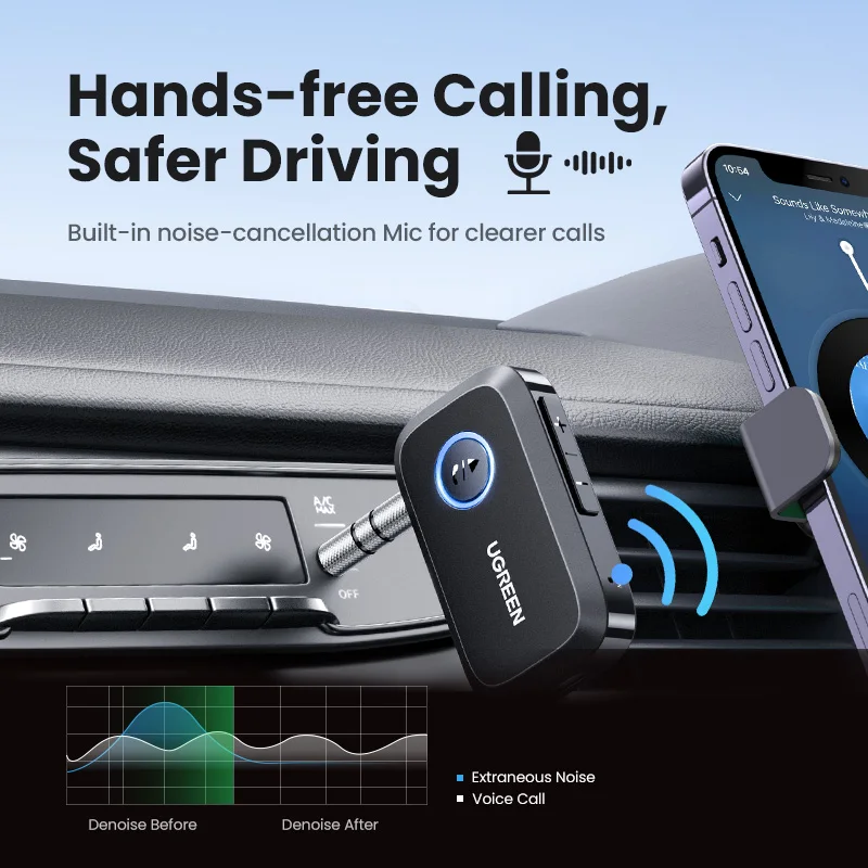 Адаптер для автомобильного приемника UGREEN Bluetooth, разъем AUX 3,5 мм для автомобильных динамиков, аудио, музыкальный приемник, гарнитура, адаптер Bluetooth 5,3