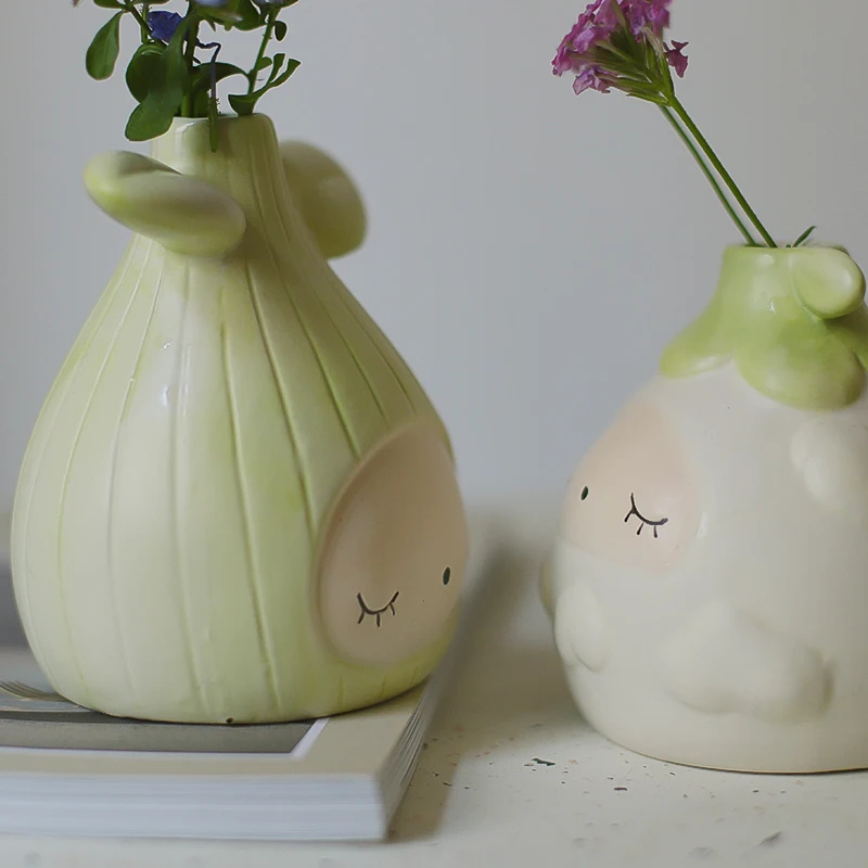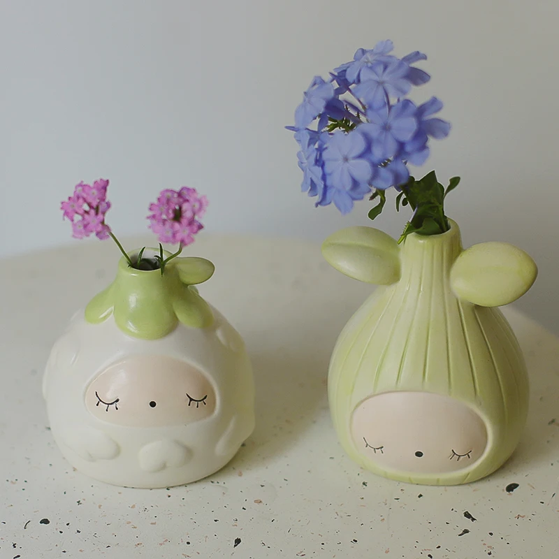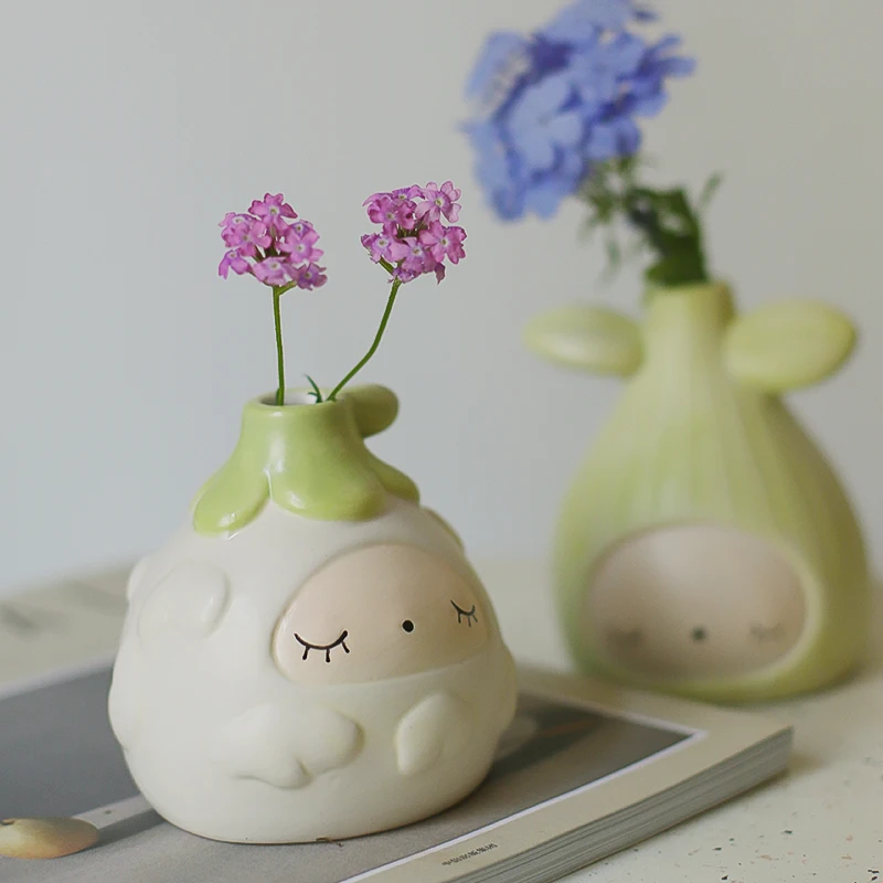 Креативная ваза в форме семян из мультфильма, фарфоровая ваза для дома и офиса, маленькая милая Европейская ваза, миниатюрные Керамические Вазы