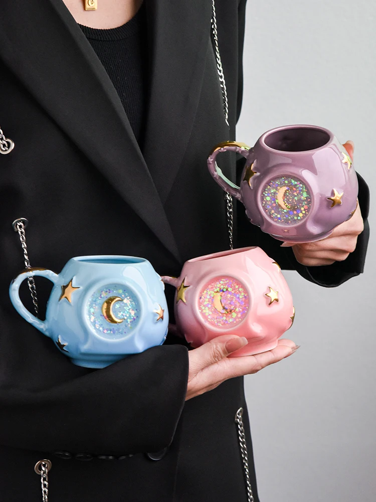 Керамическая кружка для воды со звездами, креативные блестки, ослепляющая кружка, бытовая кружка для кофе и молока, подарок на день рождения, кружки, посуда для напитков