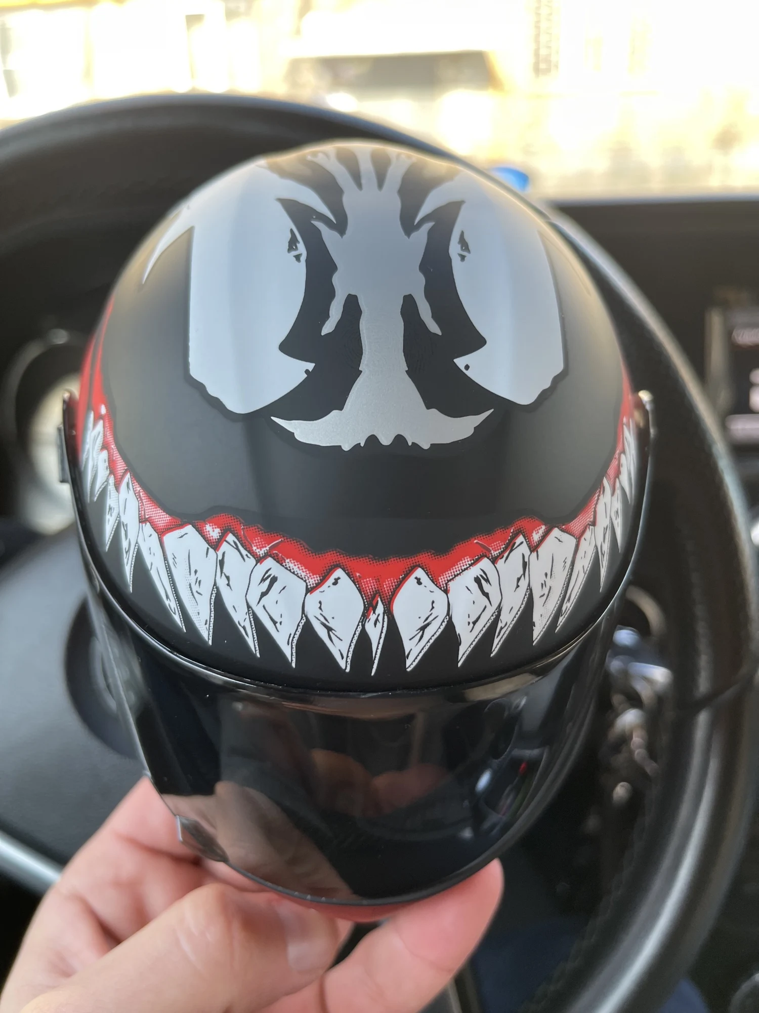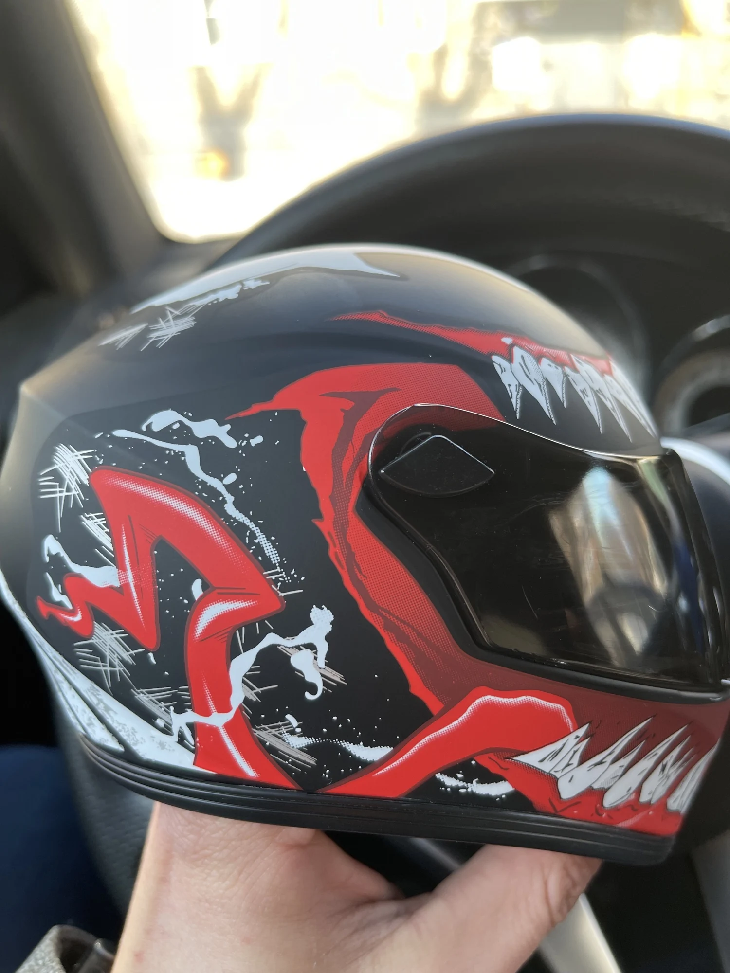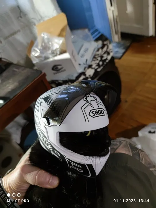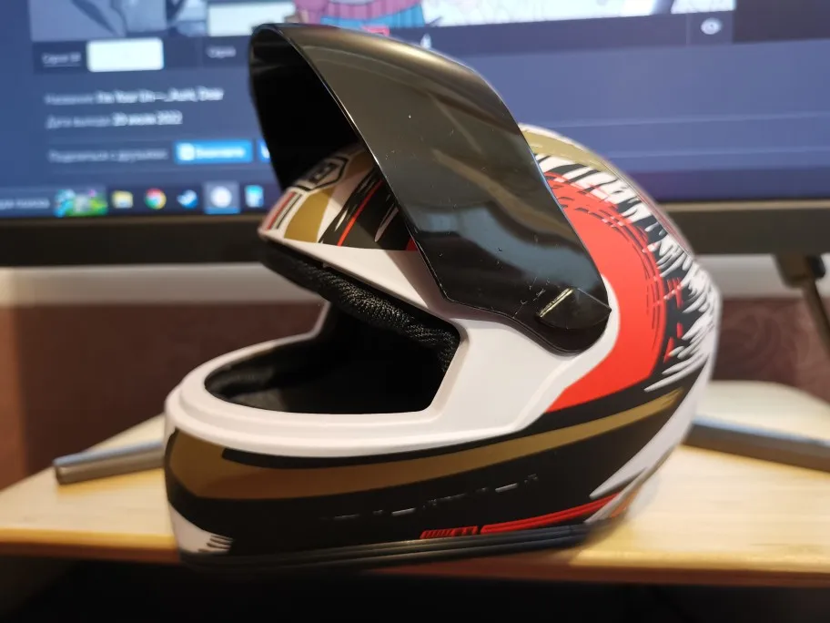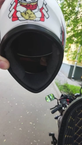 Прикольный шлем. Из минусов: не такой белый как на фото и внутренняя сторона отклеилась еще до получения.