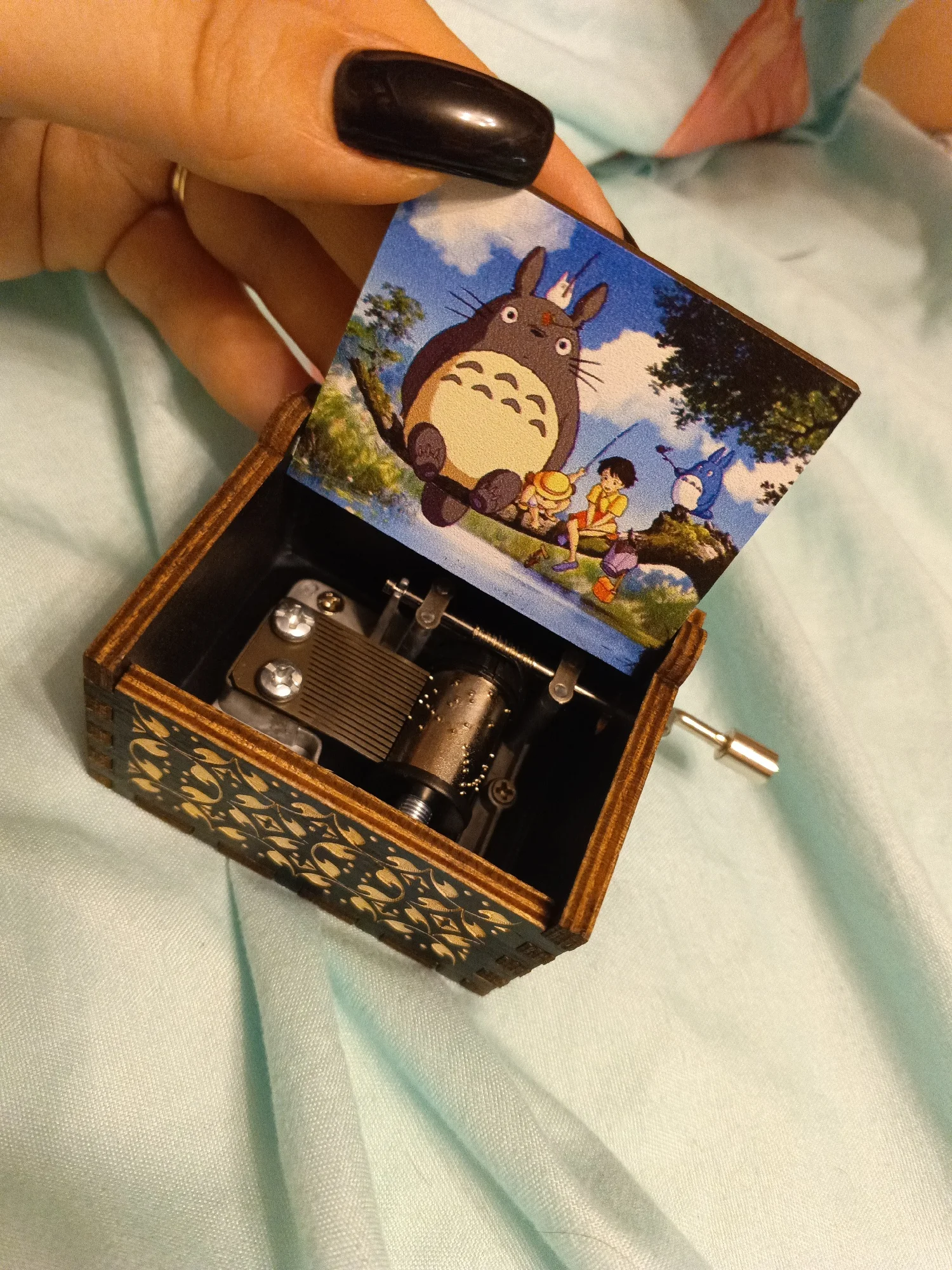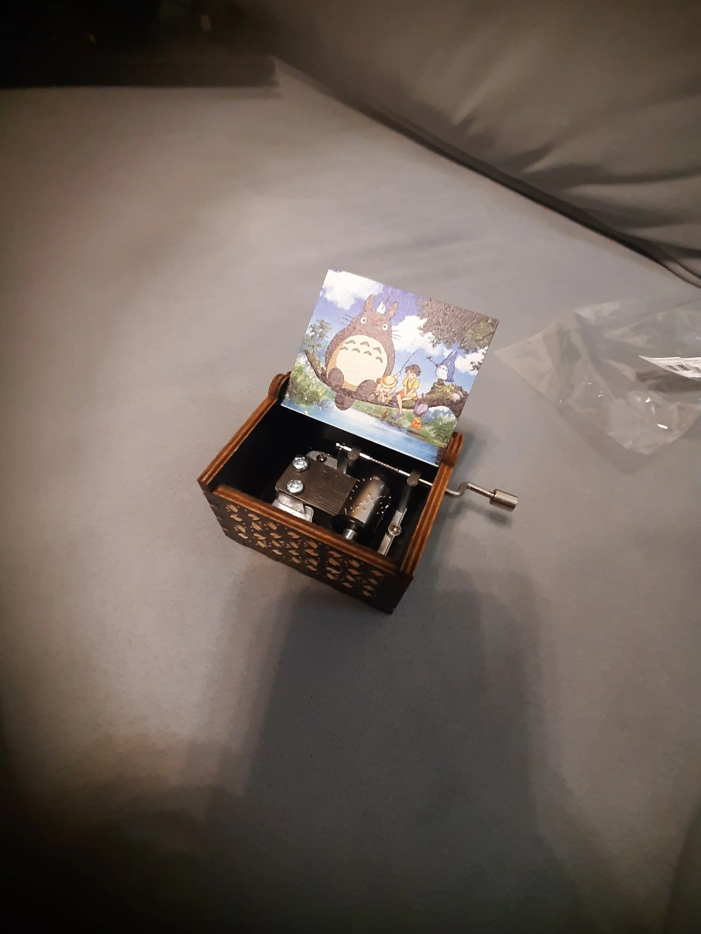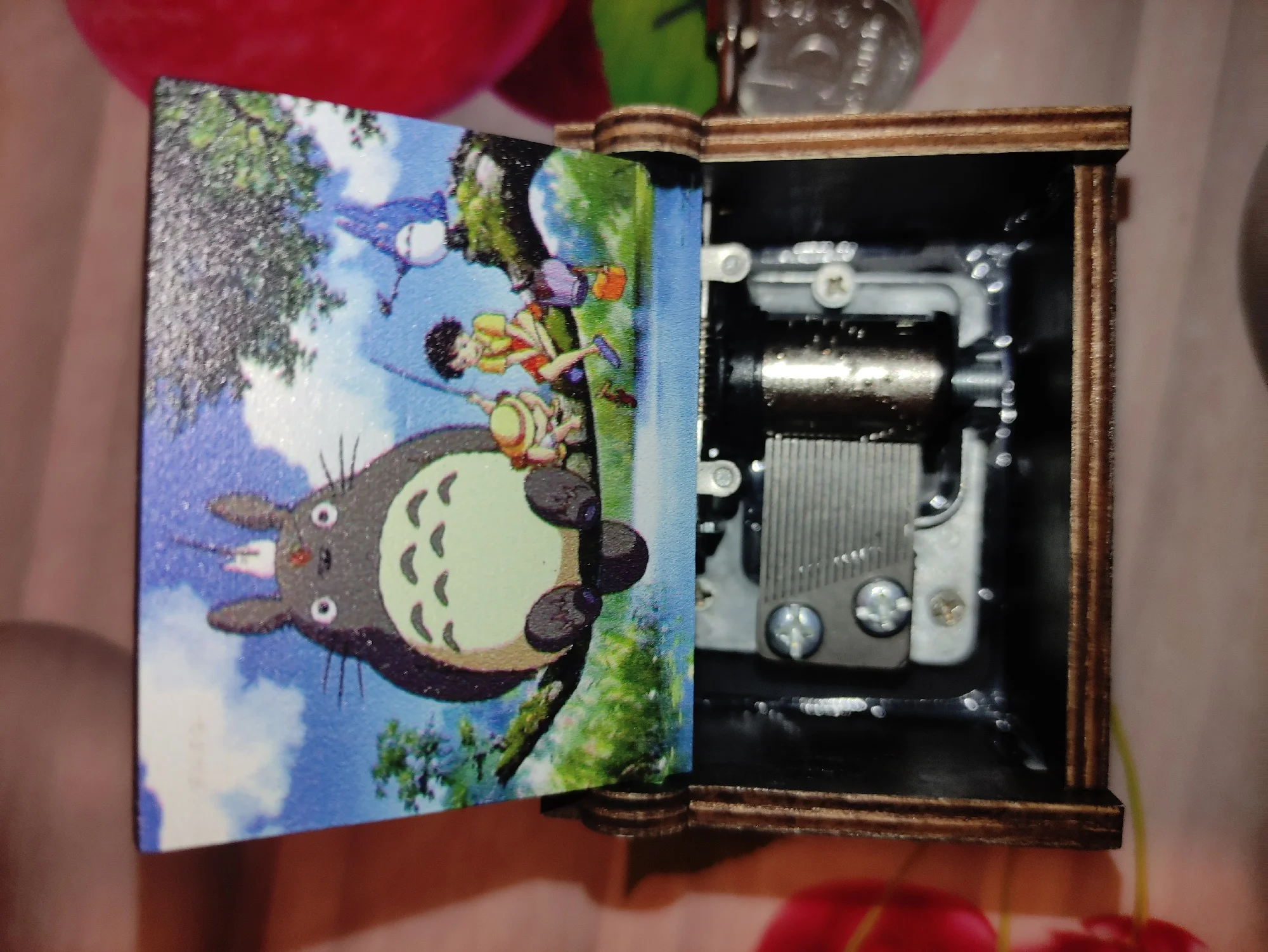 заказала 11.11, приехало на почту 29.11. пришло в коробке, работает, душещипательная мелодия(брала на подарок другу-анимешнику), вполне считаю что зайдёт. сначала волновалась что картинка распечатана на нищей бумажке, и как же обрадовалась вживую что это реально принт на дереве. работает, при тряске не сыпется и не скрипит, очень практичная штука, если попадёт в руки ребёнку - беды не будет. 10/10