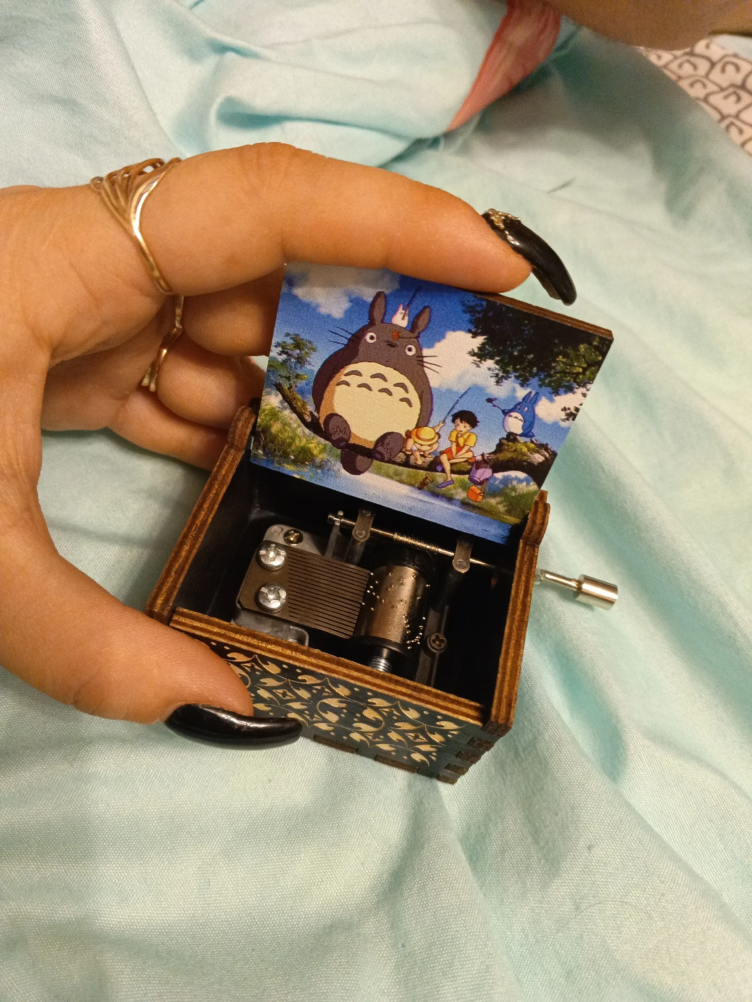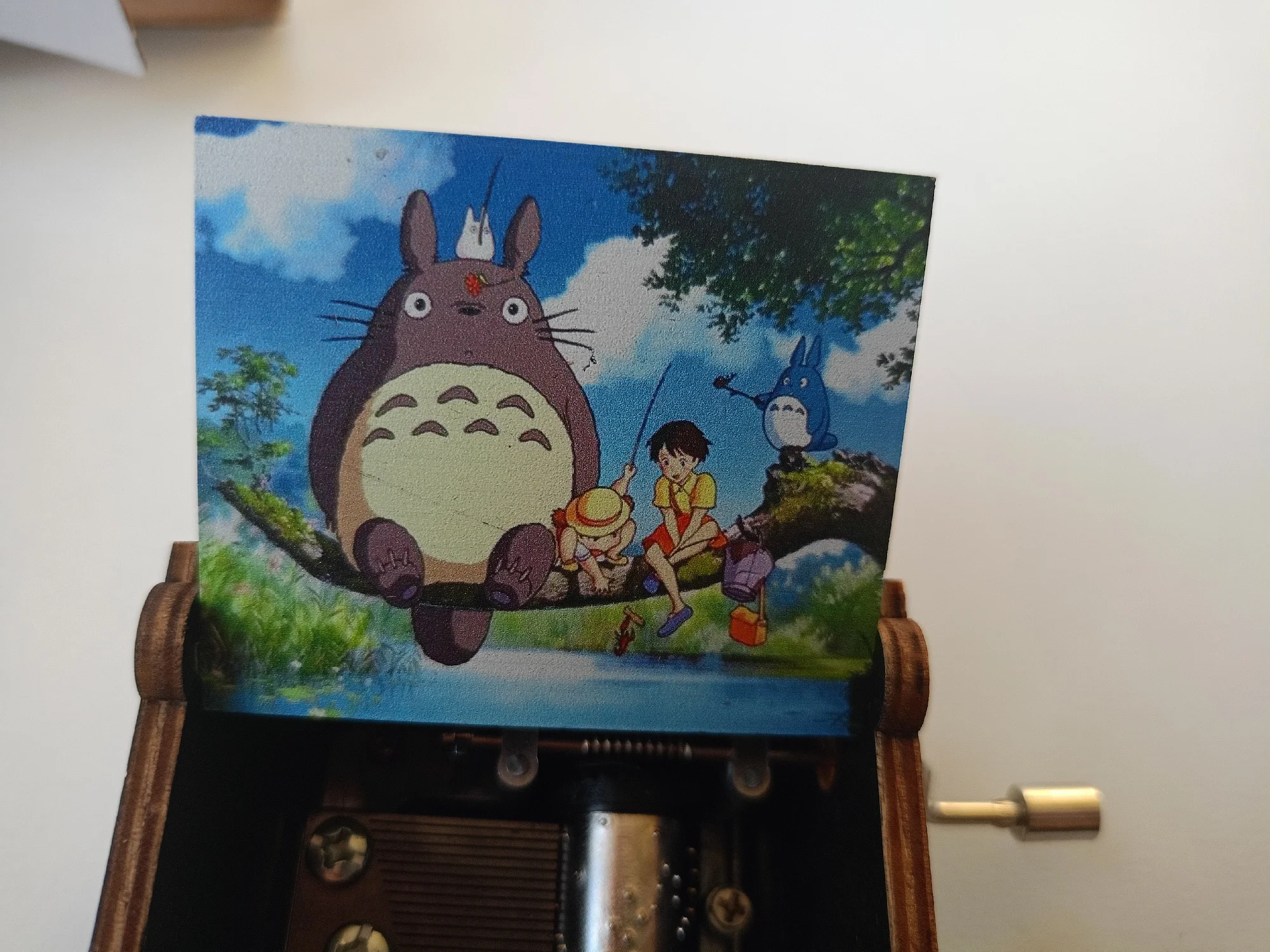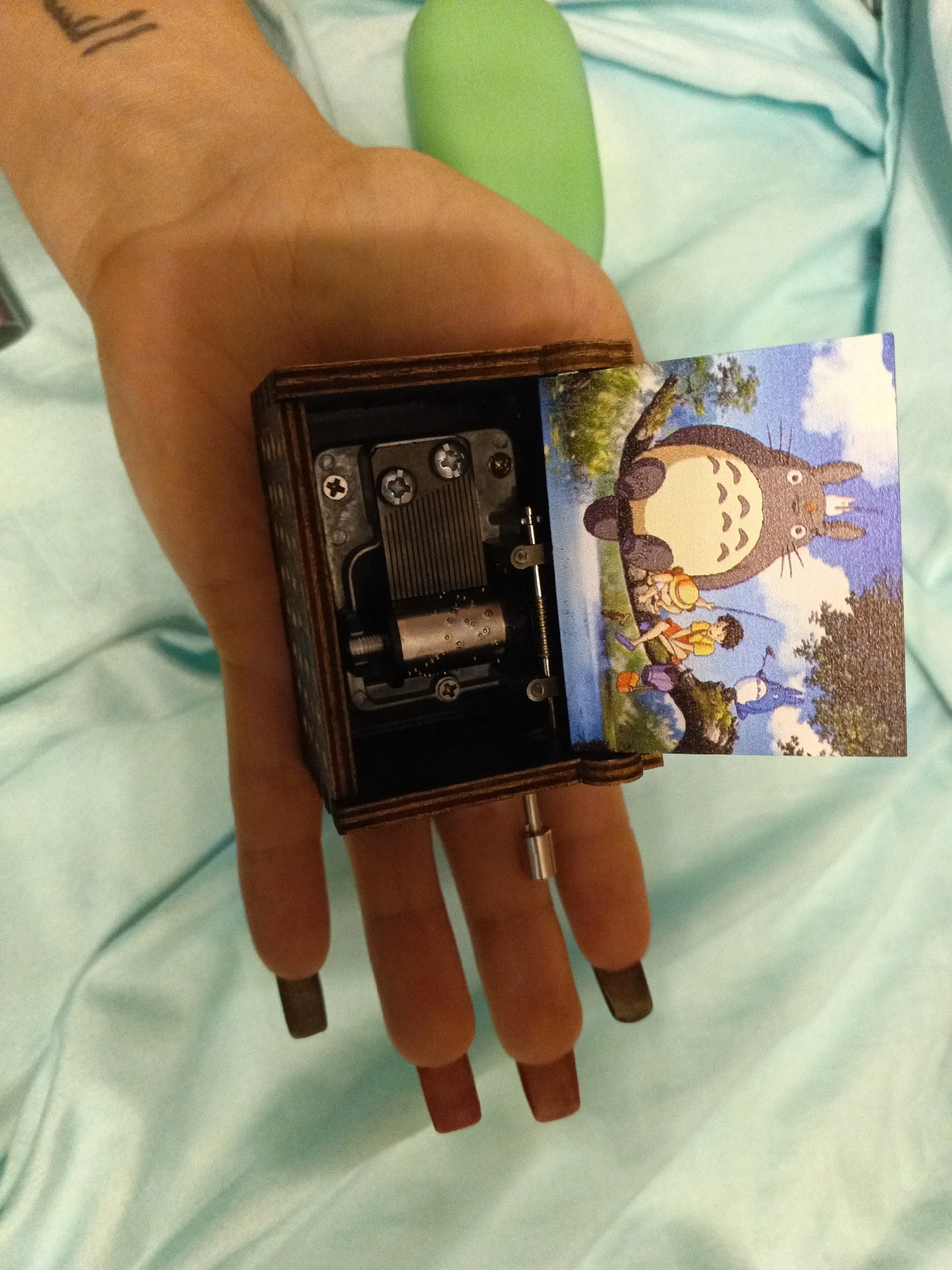 заказала 11.11, приехало на почту 29.11. пришло в коробке, работает, душещипательная мелодия(брала на подарок другу-анимешнику), вполне считаю что зайдёт. сначала волновалась что картинка распечатана на нищей бумажке, и как же обрадовалась вживую что это реально принт на дереве. работает, при тряске не сыпется и не скрипит, очень практичная штука, если попадёт в руки ребёнку - беды не будет. 10/10