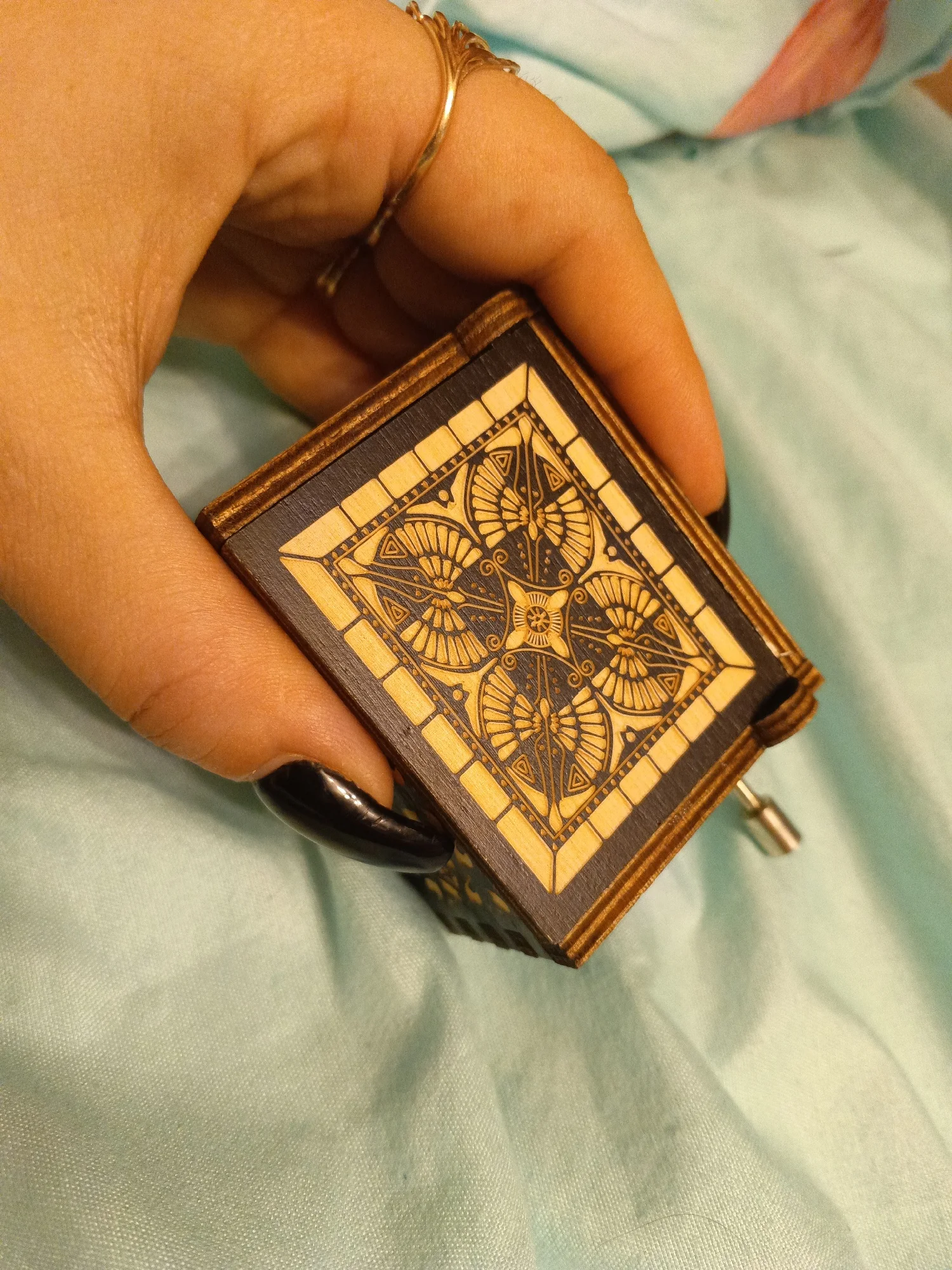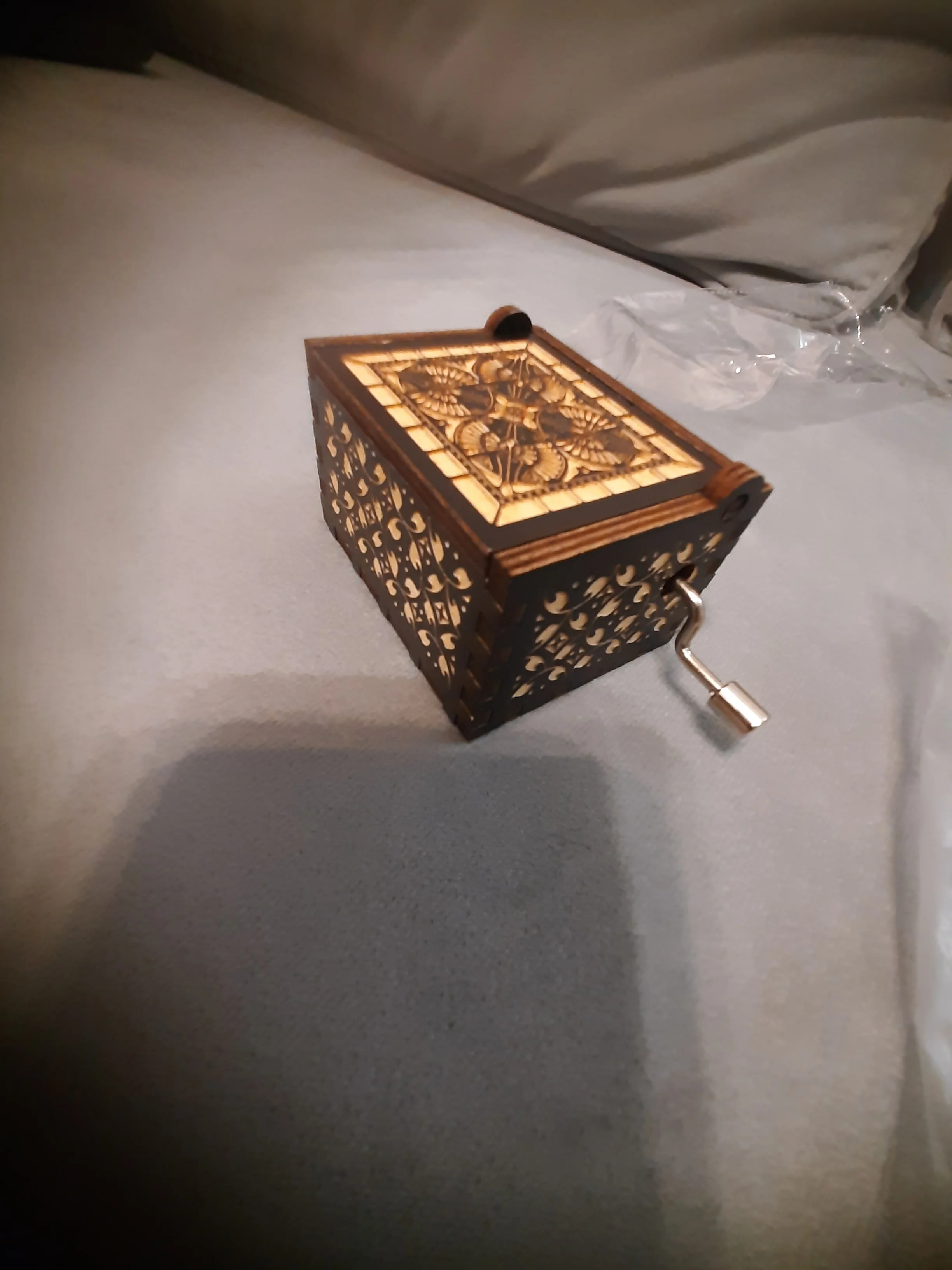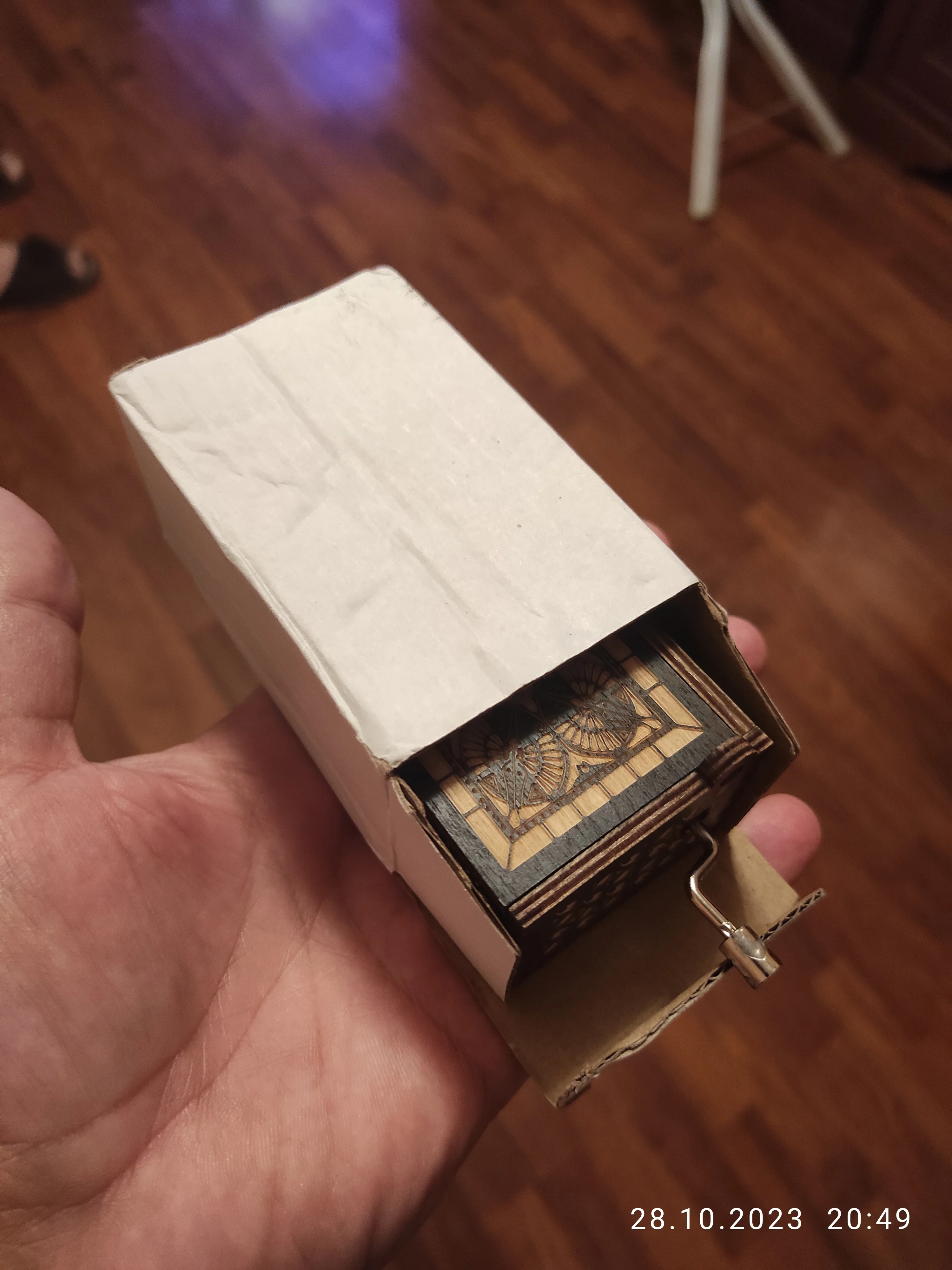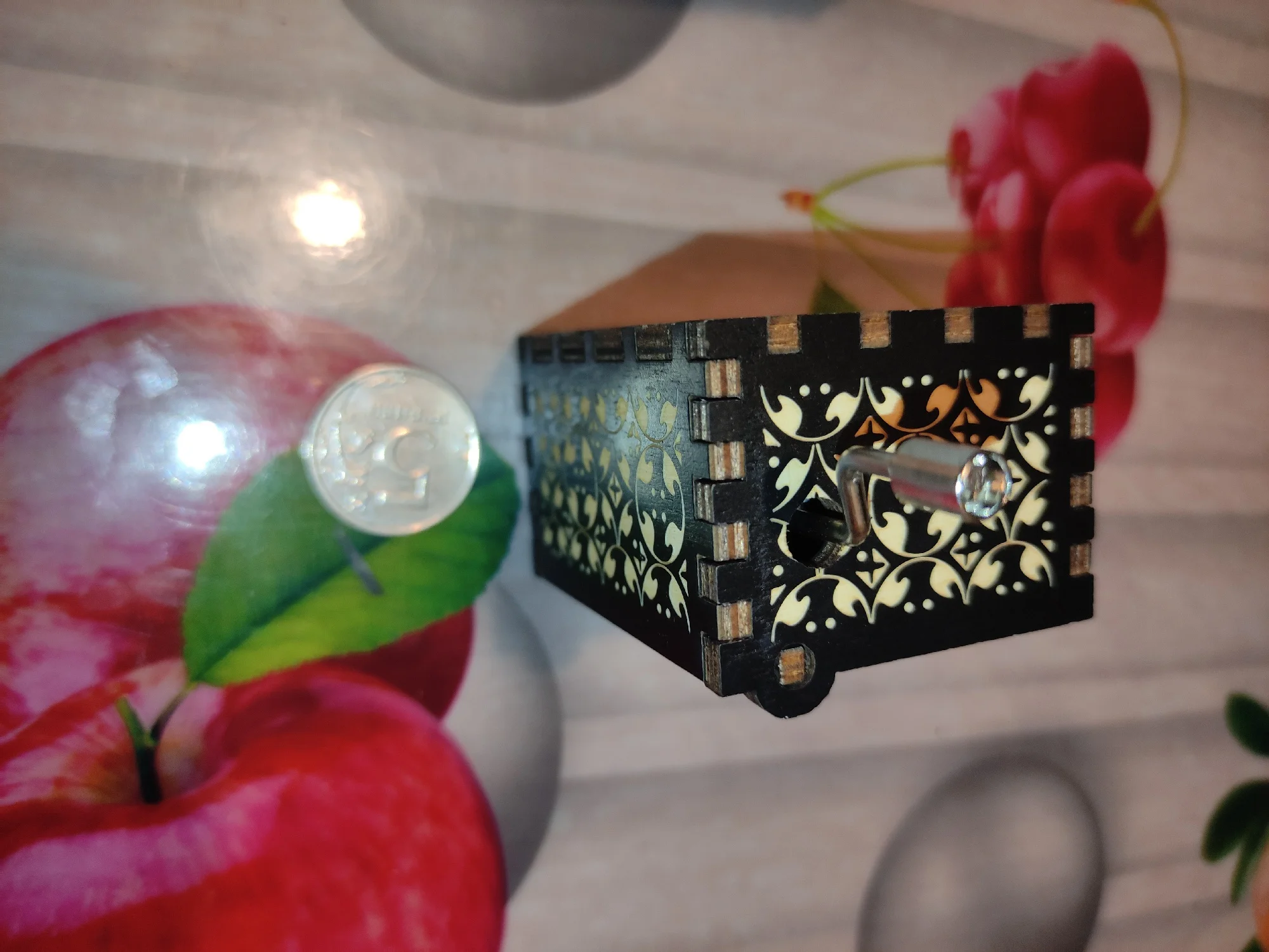 Шкатулка - бесподобная! Громкая, приятная, чёткая музыка. Пока крутишь - играет. Как остановился - музыка окончилась. Удивительно, как этот маленький механизм может так издавать звуки. Спасибо продавцу и службе доставки за удивительный товар и за доставку раньше срока. Конечно рекомендую!