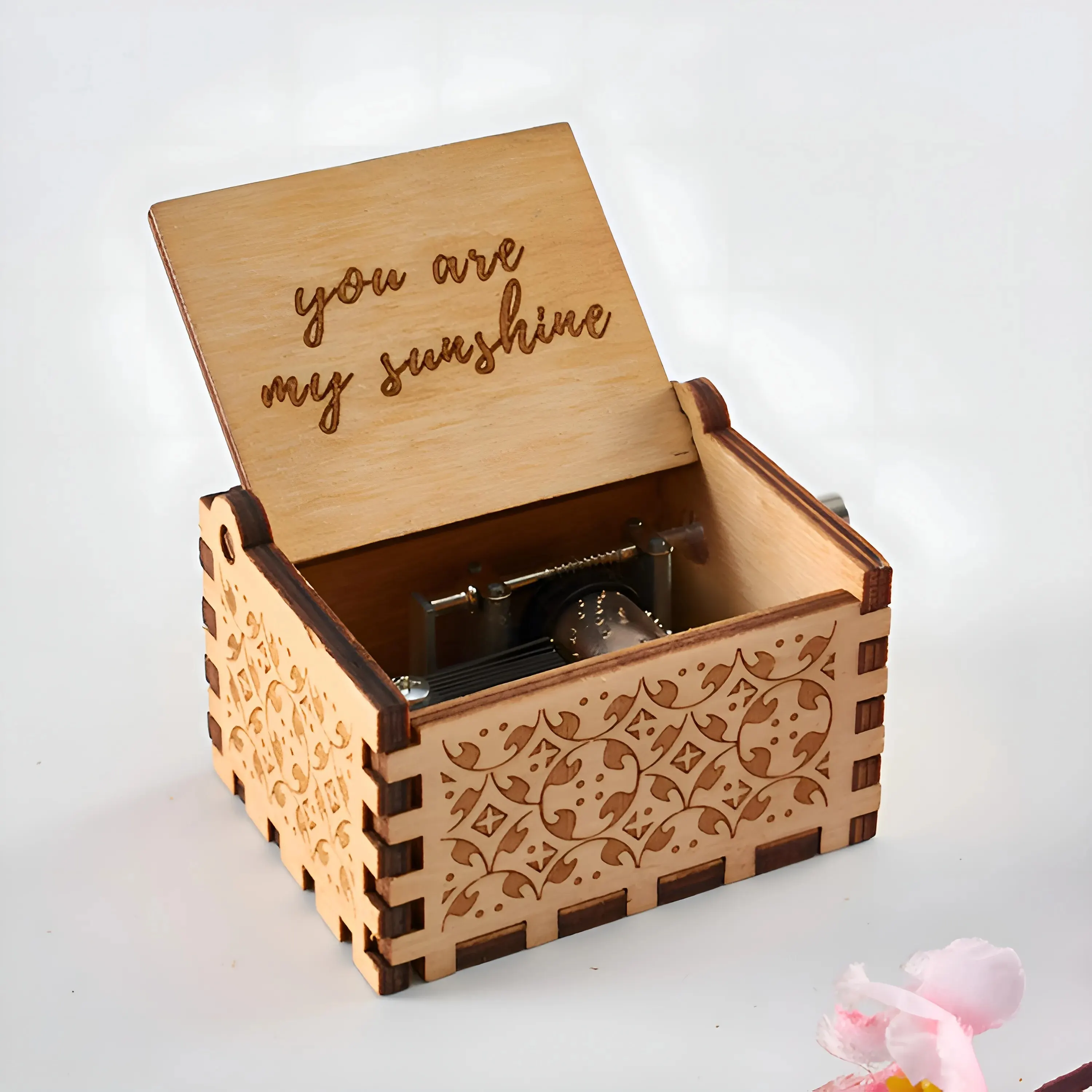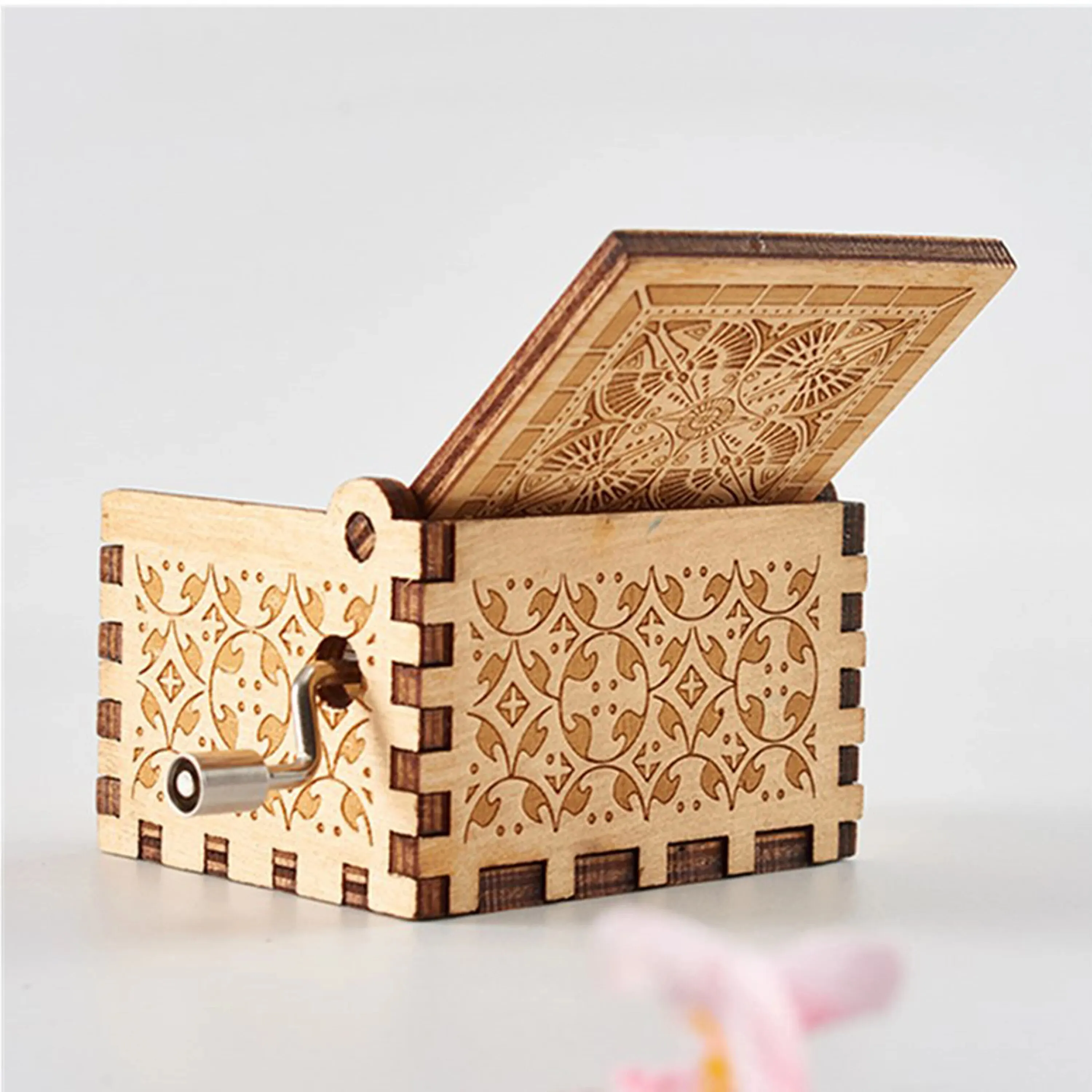 Деревянная музыкальная шкатулка, креативная фотография, роскошный подарок, роспись, печать, гравировка, ручной механизм, деревянная ручная работа