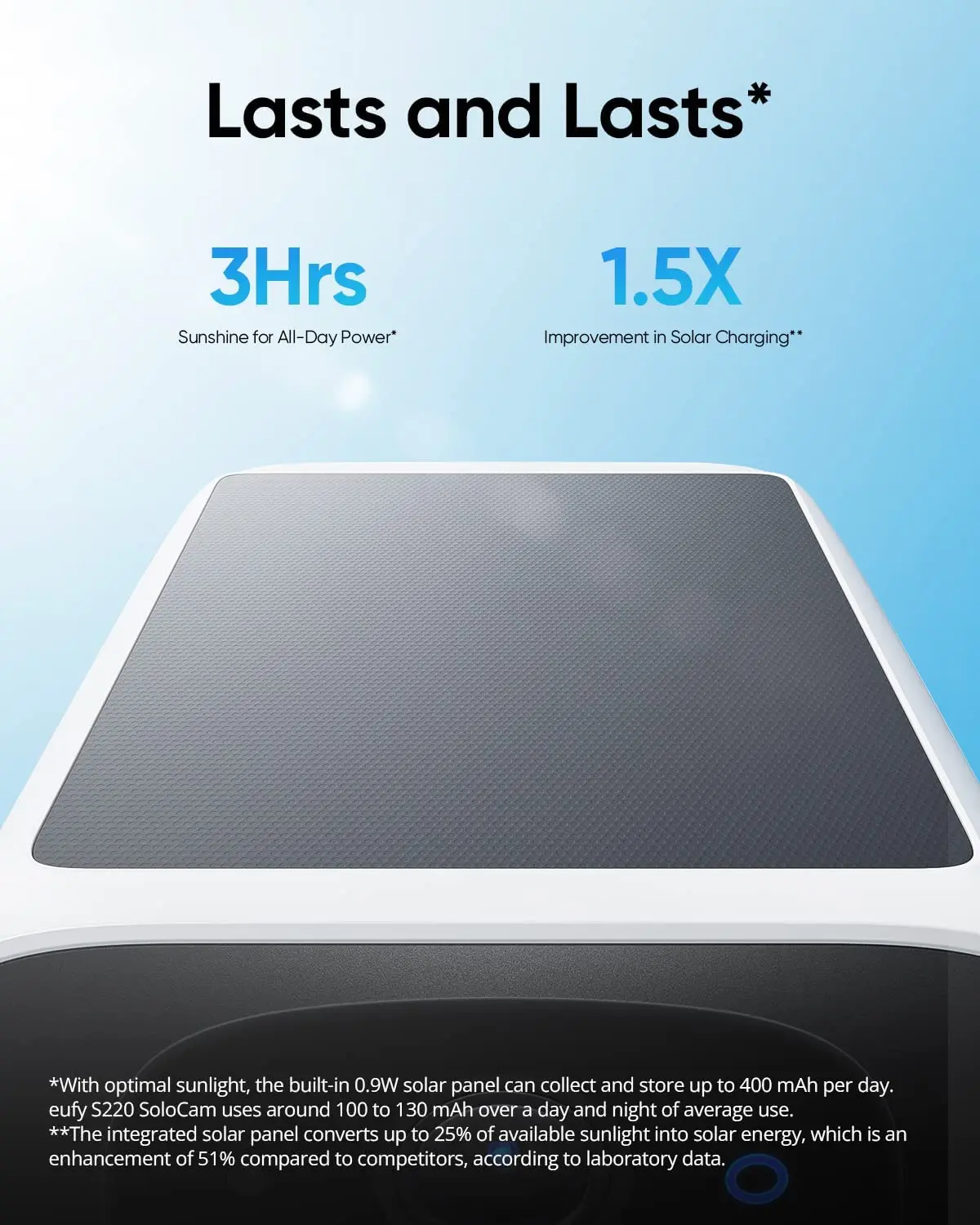 Солнечная камера безопасности eufy S220 SoloCam, беспроводная наружная камера непрерывной мощности, разрешение 2K, беспроводная