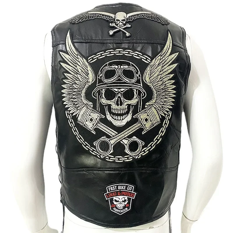 Мотоциклетный кожаный жилет, мужская куртка без рукавов, Байкерская Повседневная Уличная одежда, локомотивная Клубная куртка в стиле панк