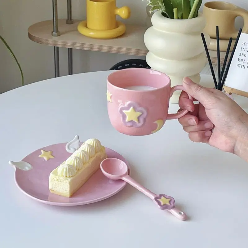 Мультяшная кружка Сейлор Мун с ложкой, чашка для воды, кружка для кофе, Термостойкая керамическая чашка, забавная кухонная посуда для сока и воды, подарок