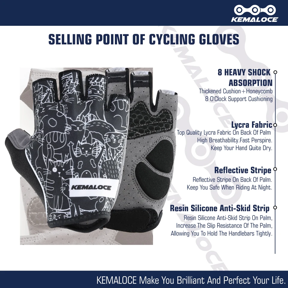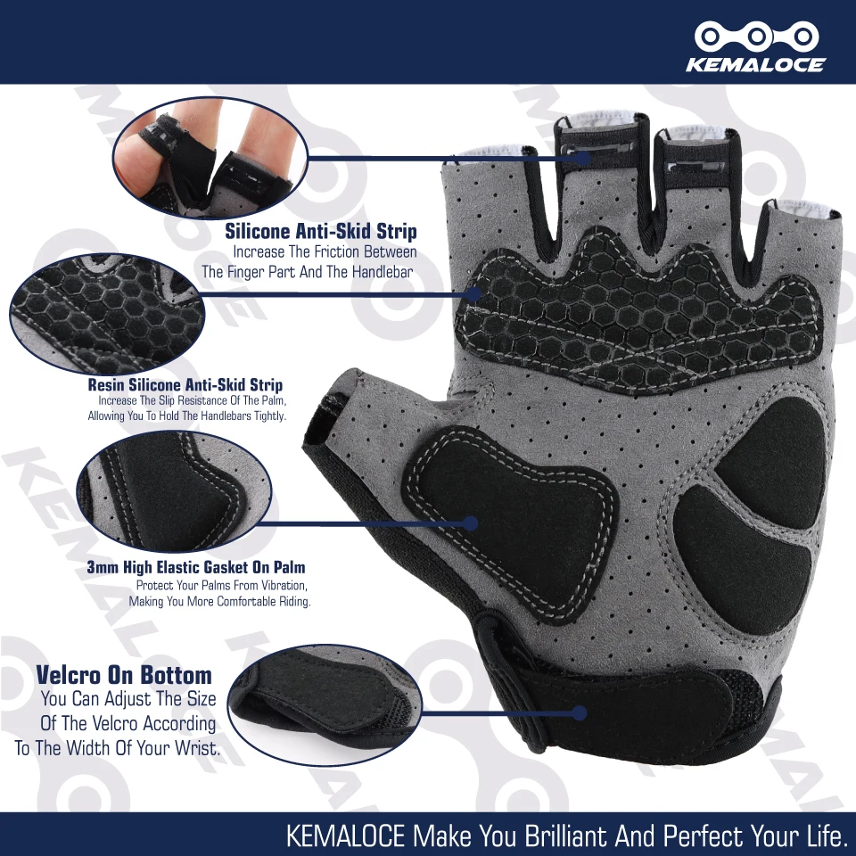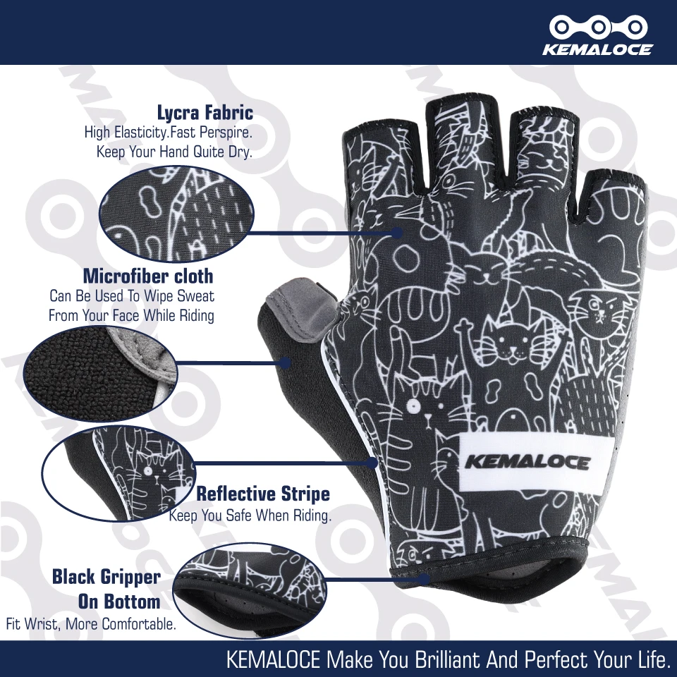 Велосипедные перчатки KEMALOCE для мужчин и женщин, летние Митенки на полпальца для дорожных гонок, Нескользящие Светоотражающие спортивные женские перчатки