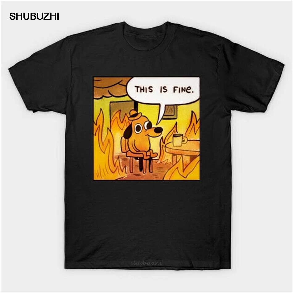 Забавная черная футболка с мемом, с надписью «This Is Fine», подарок для друзей, унисекс, мужская, женская футболка
