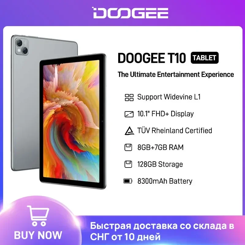 Планшет 10.1'' DOOGEE T10 8/128 ГБ за 7933 руб FHD, Unisoc T606, 13+8 Мп, 8300 mAh, 2 симки