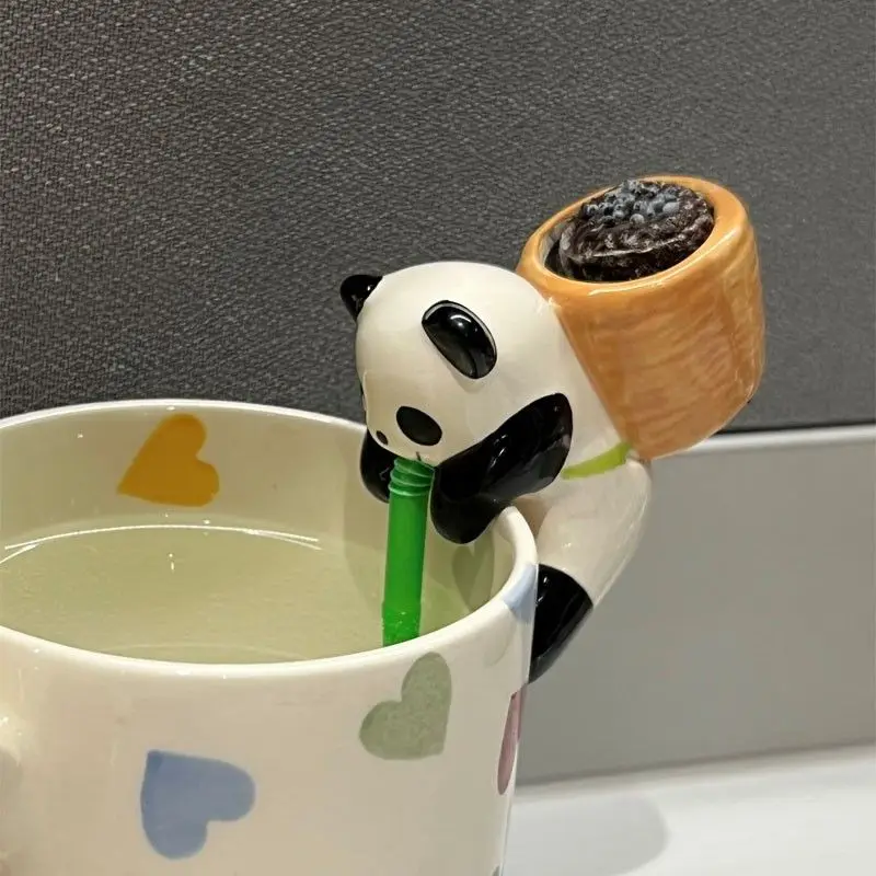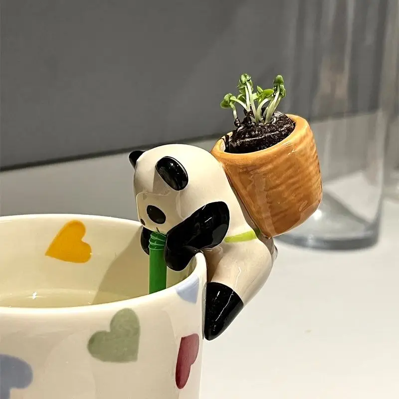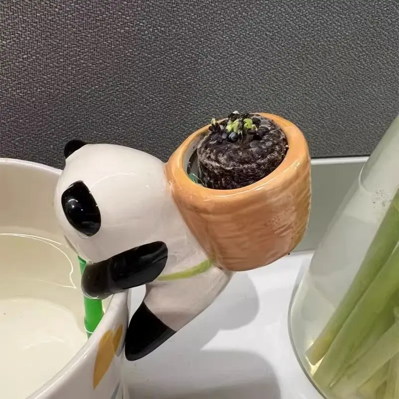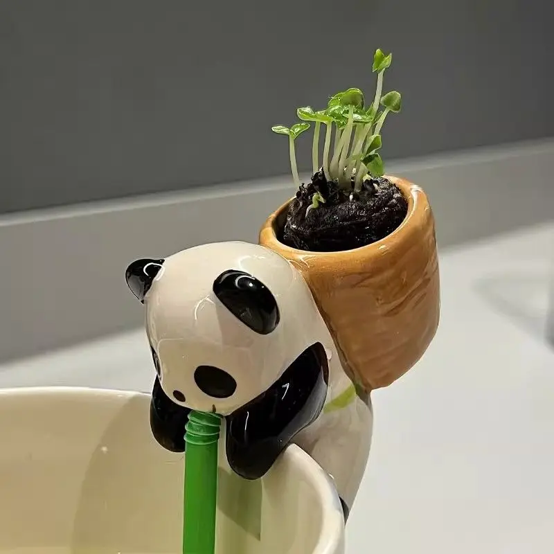 Керамические маленькие горшечные растения с микро-пейзажем, офисная мебель, мини панда, соломенные зеленые растения, креативные Мультяшные животные
