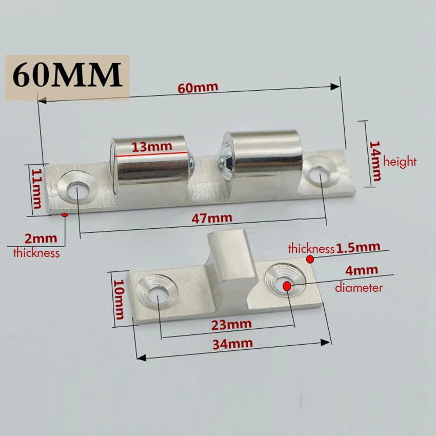 Стальная шариковая защелка длиной 60 мм из чистой меди с двойной пружиной, защелка для мебели, шкафа, двери шкафа, регулируемая защелка для шкафа