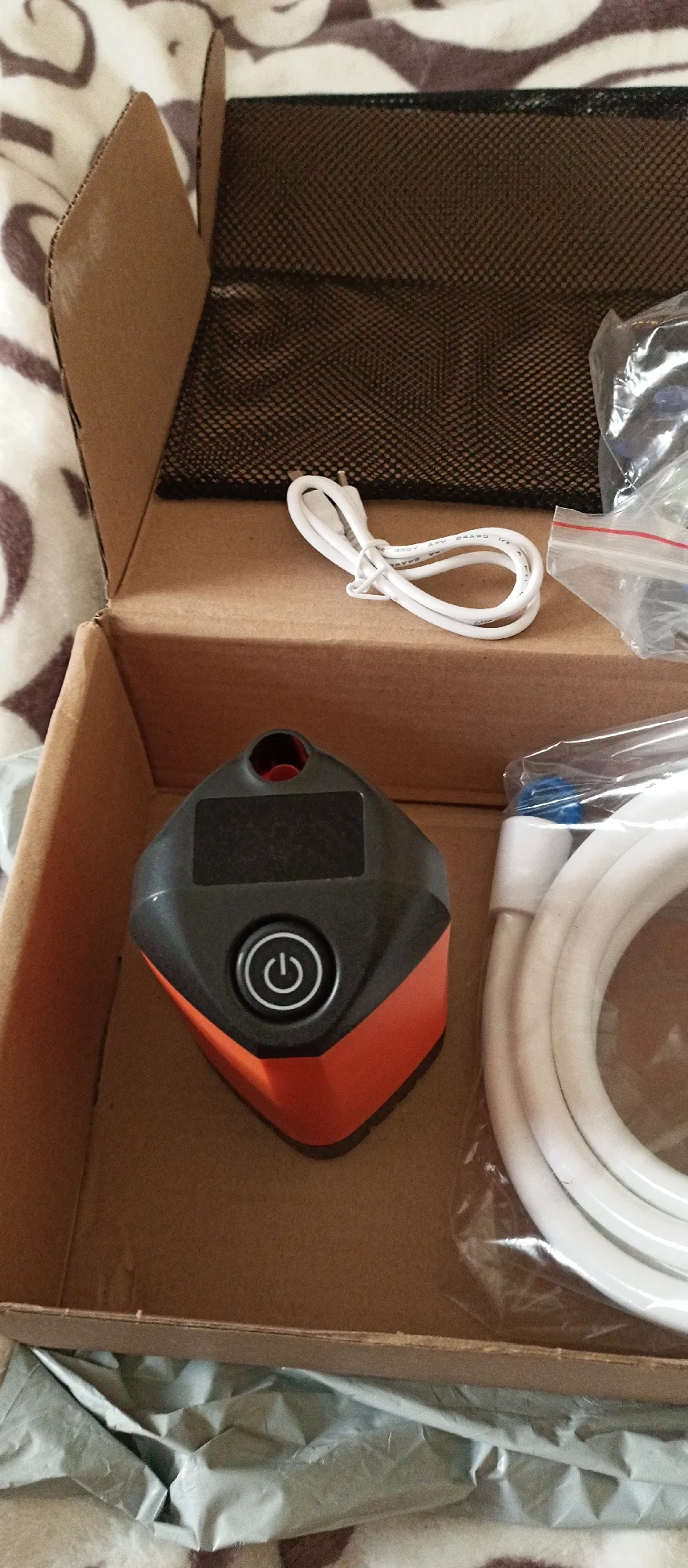 ВАУ! То, что надо! При отключениях воды больше никакого «ковшика», только полноценный душ и полный комфорт! Я в полном восторге???? Пришло все целое в коробочке, в комплект входит сам насос, зарядка к нему, душевая лейка, шланг, присоска что бы повесить душевую леечку если нужно, инструкция и еще сетчатый мешочек, куда можно сложить все это добро. До Киева пришло за несколько недель через мист. Заказывала простой вариант без дисплея. Пришёл разряженный, на его зарядку ушло около часа, опробовали с тазиком воды - все работает просто шикарно! Напор отличный, конечно расход воды будет достаточно большой, но это достаточно ожидаемо для душа????☺️ с ведром воды точно помыться можно будет без всяких проблем. Включить/выключить на самом насосе зажать кнопку, сам шланг нужно хорошо надавить и крепко закрепить к насосу, что бы не он выдергивался(это важно!), и тогда думаю полный порядок. Очень довольна покупкой!!!