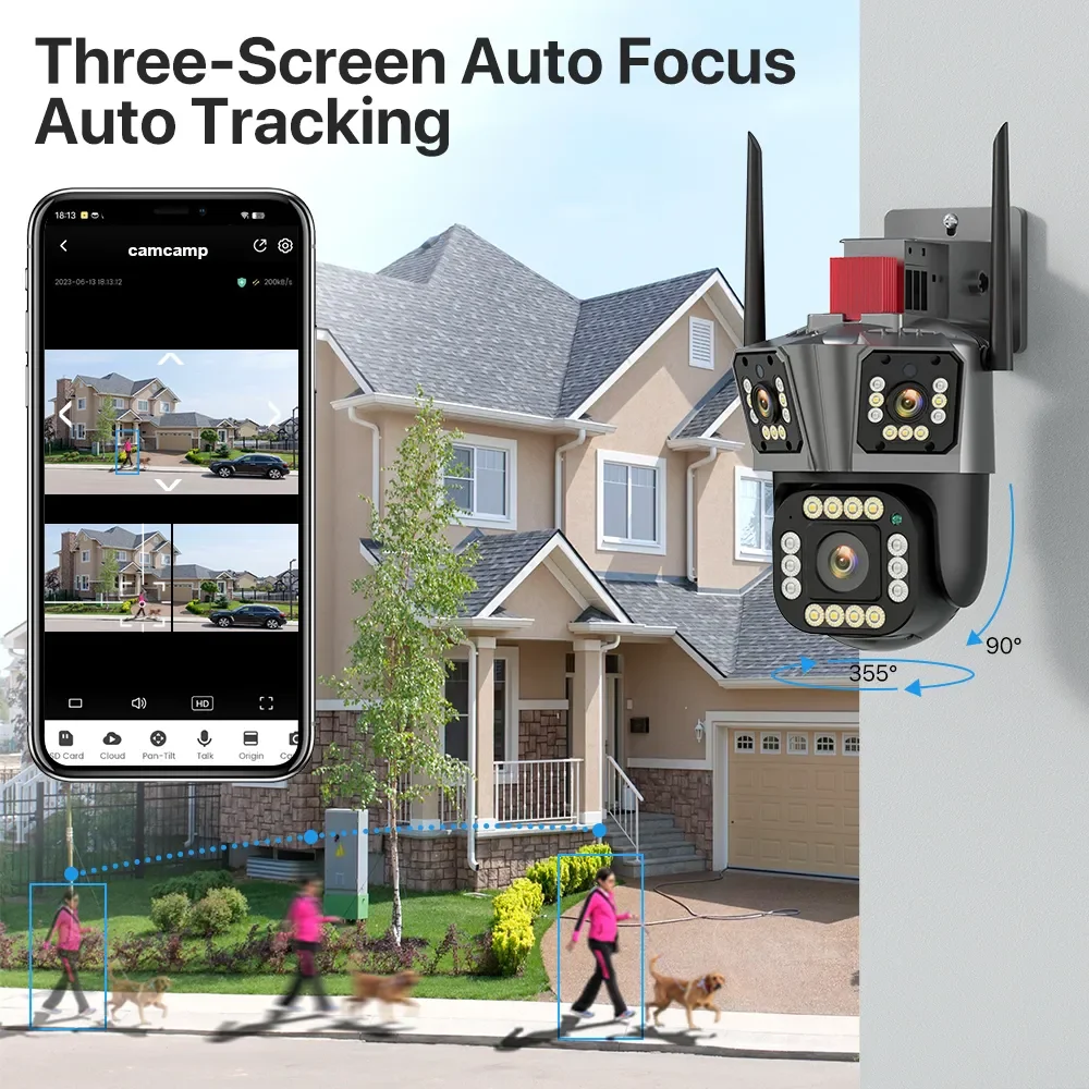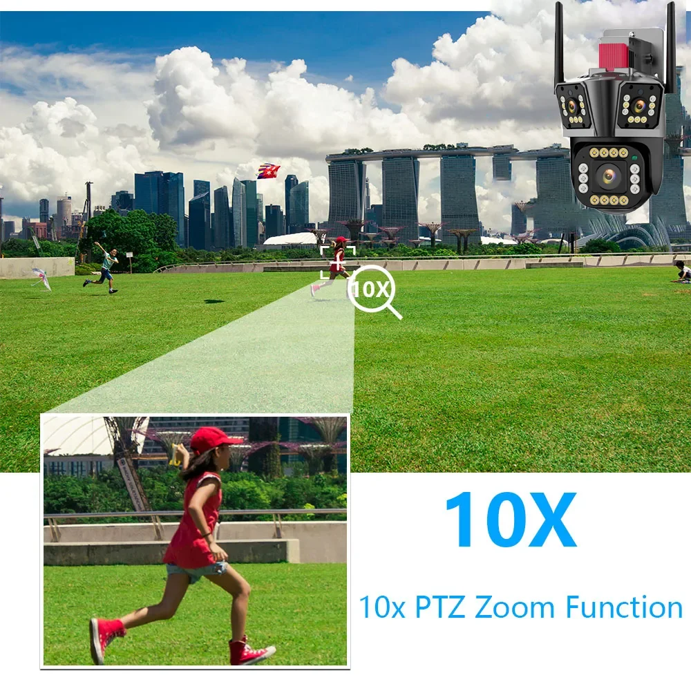 - Умная PTZ Wi-Fi камера 6K HD с тремя объективами и тройным экраном 10X...