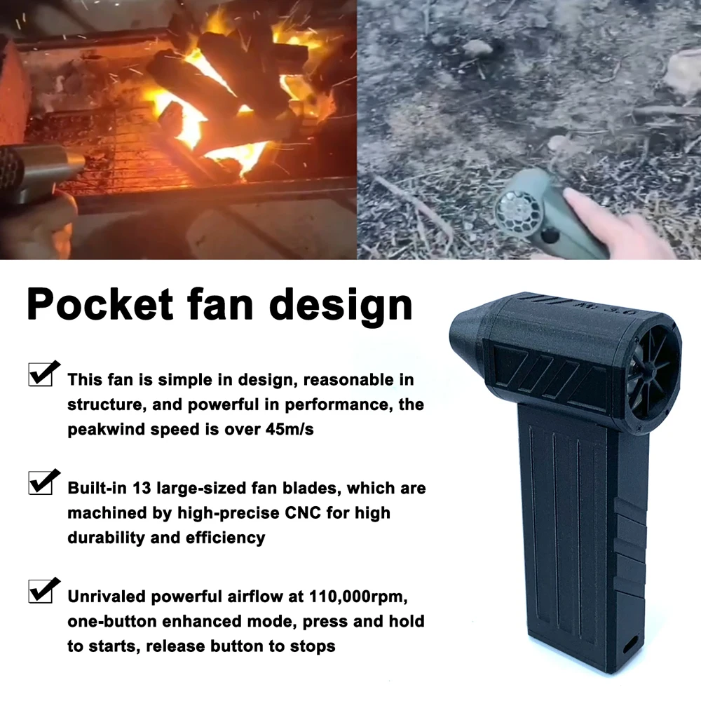 Бесшумный мощный Турбовентилятор, 130000 об/мин, быстрый бесщеточный двигатель, воздуходувка типа C PD, быстрая перезарядка, воздуходувка, воздуходувка