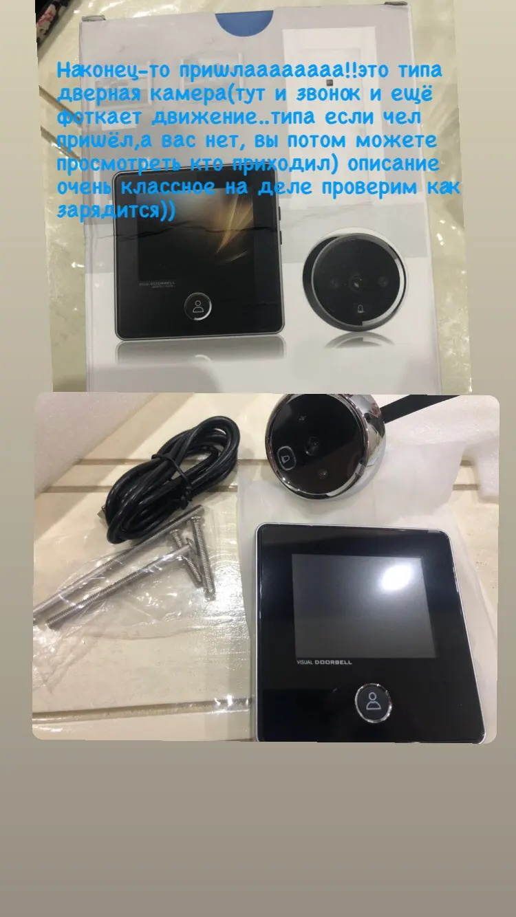 Доставка очень быстрая,3 дня,до Питера.Установка 5 мин.Качественная сборка,заряжен полностью.Работает,как и заявлено.Надеюсь заряда хватит на несколько месяцев.Функционал радует,как и цена данного видео глазка.Рекомендую к покупке.