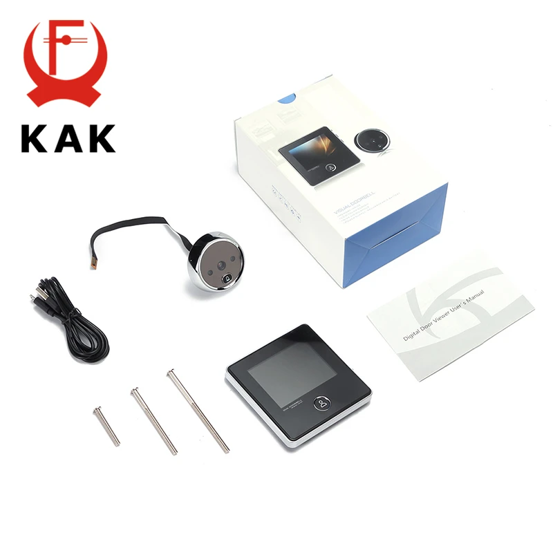 Электронный дверной глазок KAK с ЖК-экраном 2,8 дюйма, умный инфракрасный ночник для двери, запись фото, цифровой дверной глазок, дверной звонок