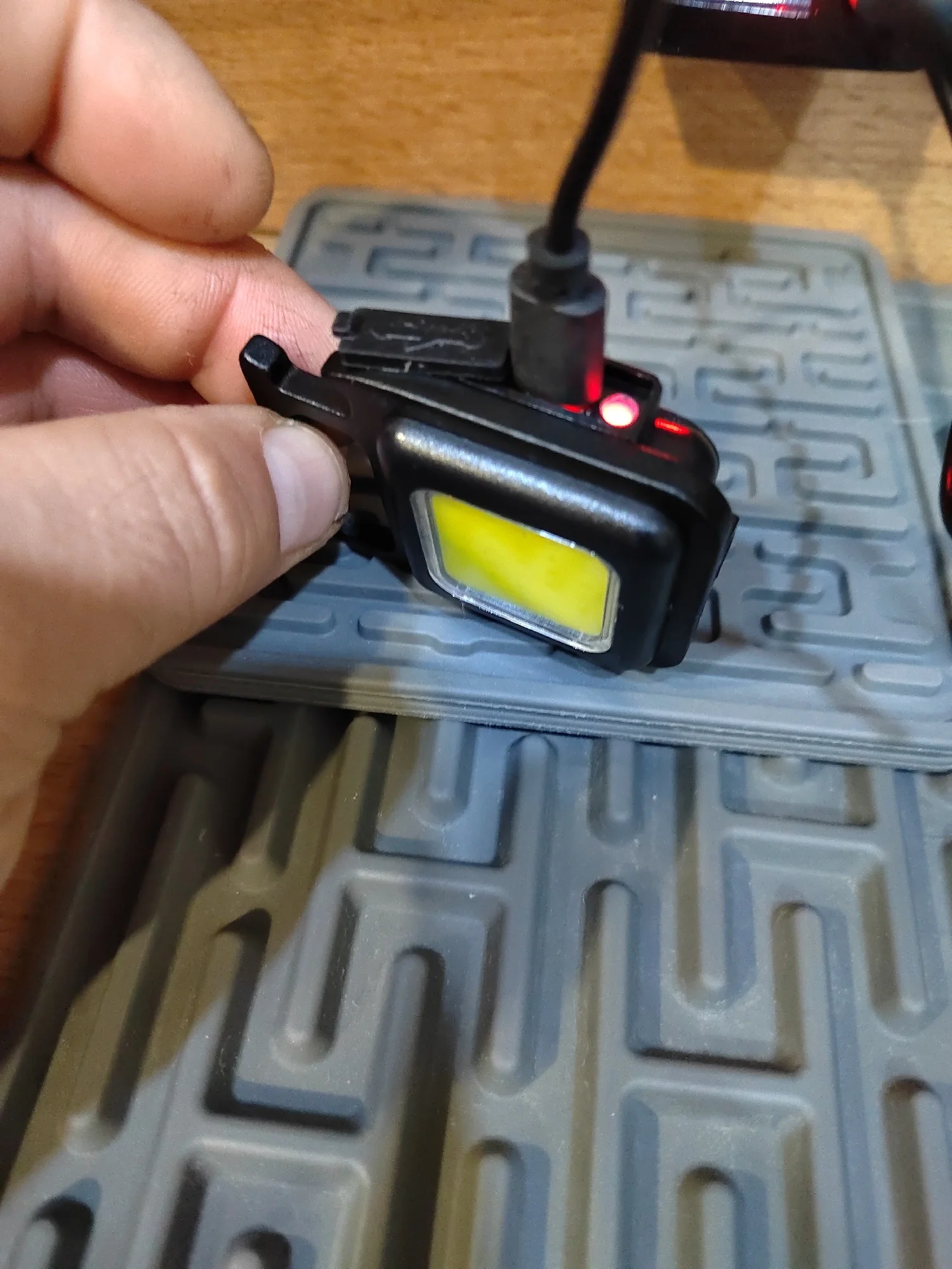 Ліхтарик працює і заряджається. Але поки що не знаю скільки часу триматиметься. Також здавалося, що він більший, ну зате компактний. Має 3 режими: яскравіше світло, слабше і мигання. Ставлю 4 зірки за неякісне гніздо. Потрібно запихати зарядне якось боком бо саме гніздо нерівно закріплене((( Йшов близько місяця