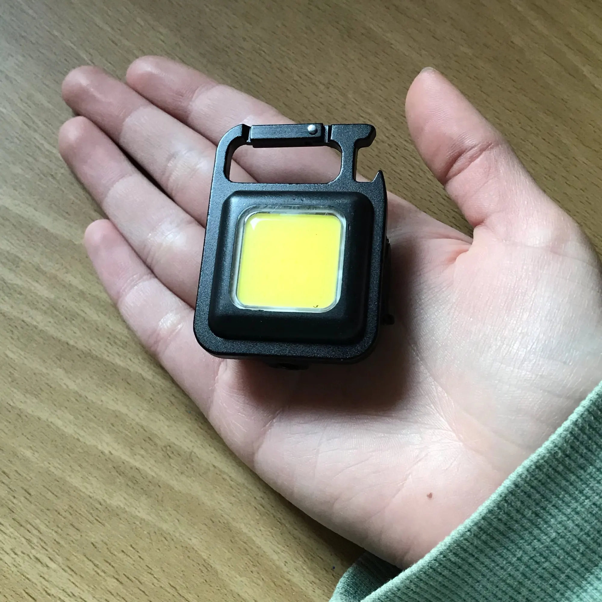 Дешевый крошечный фонарик, вешается как брелок на автомобильные ключи, светит очень ярко