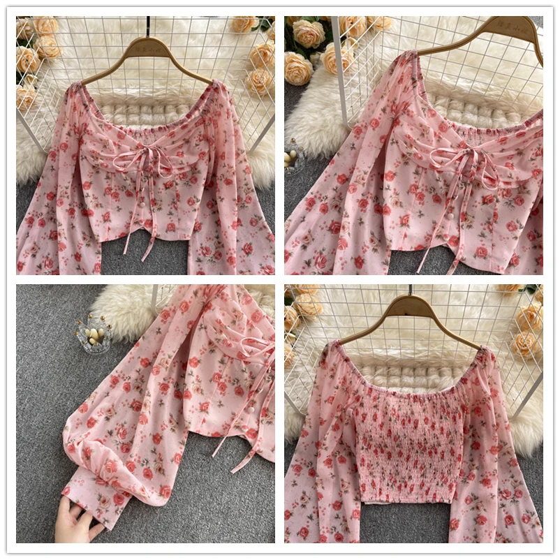Женские блузки с цветочным принтом SINGREINY, элегантные весенние эластичные Блузы с рюшами, элегантные рубашки с цветочным принтом