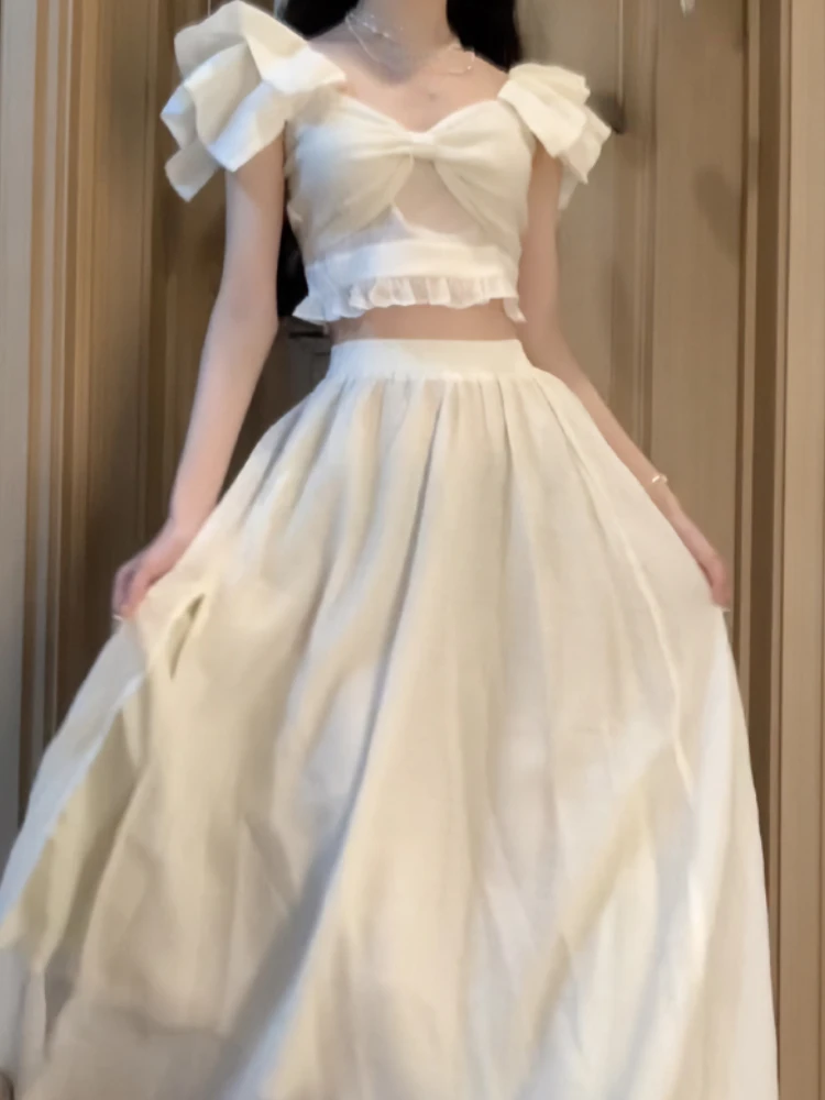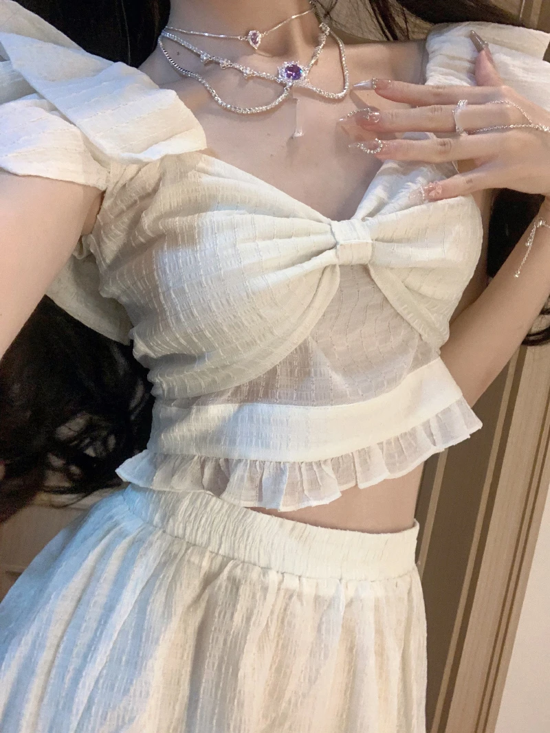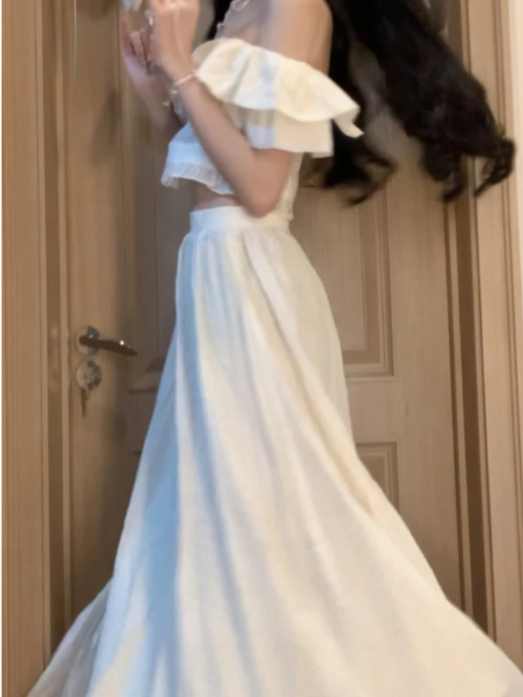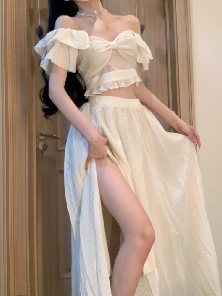 Женская блузка с открытыми плечами и юбка, модель 2023 в Корейском стиле