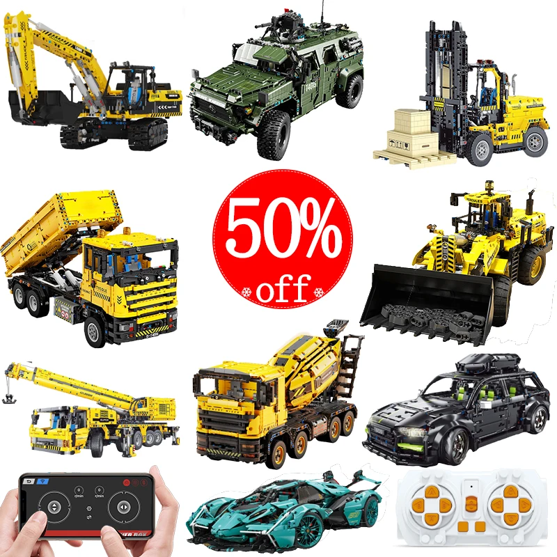 Техническое приложение, мотор с дистанционным управлением, строительные блоки, кирпичи, суперспортивный внедорожник, автомобиль, экскаватор, Инженерная техника, грузовик, Moc, подарки для мальчиков