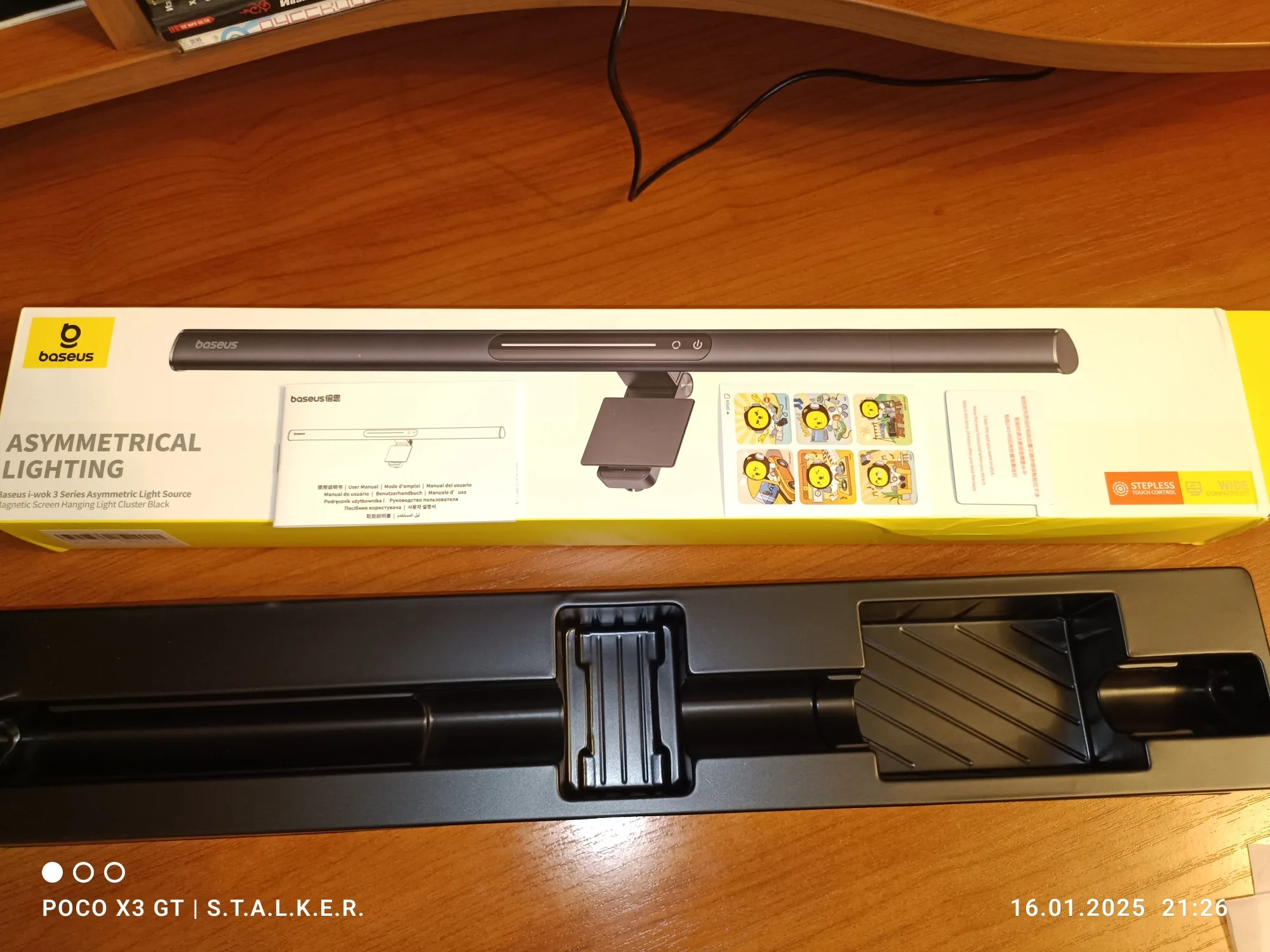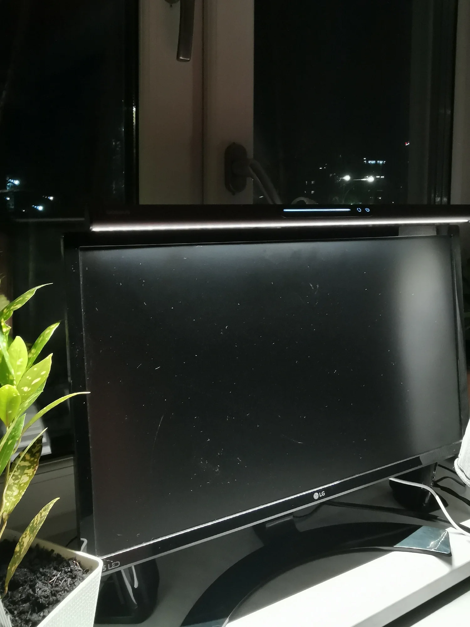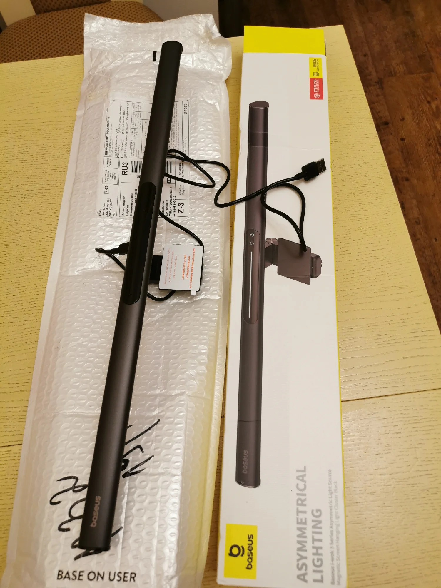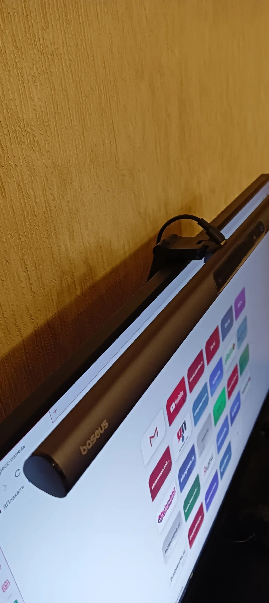 Быстрая доставка. Коробка была внутри пенопластового конверта и получила незначительные повреждения. Сама коробка довольно красивая. Материал лампы приятный, управление Интуитивно понятное. Питание подается через USB тип A (блок питания не входит в комплект), что удобно во время отключения электроэнергии в моем районе (его можно просто подключить к общему блоку питания). Я надеялся, что магнитная полоса является дополнительным монтажным решением, но это не так. В моих попытках смонтировать его способом, который я предпочитаю, я обнаружил, что простого крюка с противовесом будет достаточно (если я сделаю более постоянное решение, буду обновлять дизайн). Я нахожу ligh бросить слишком широкий, так что он ослепляет меня или выделить частицы пыли на мониторе вместе с нижней рамкой (см. Фото), который сильно неудобно и раздражает. Если вы живете в чистой среде или не против выделить пыль и нижнюю панель, если ваши обстоятельства предполагают, что вы не меняете монитор или не перемещаете этот свет, я полностью рекомендую этот продукт.
