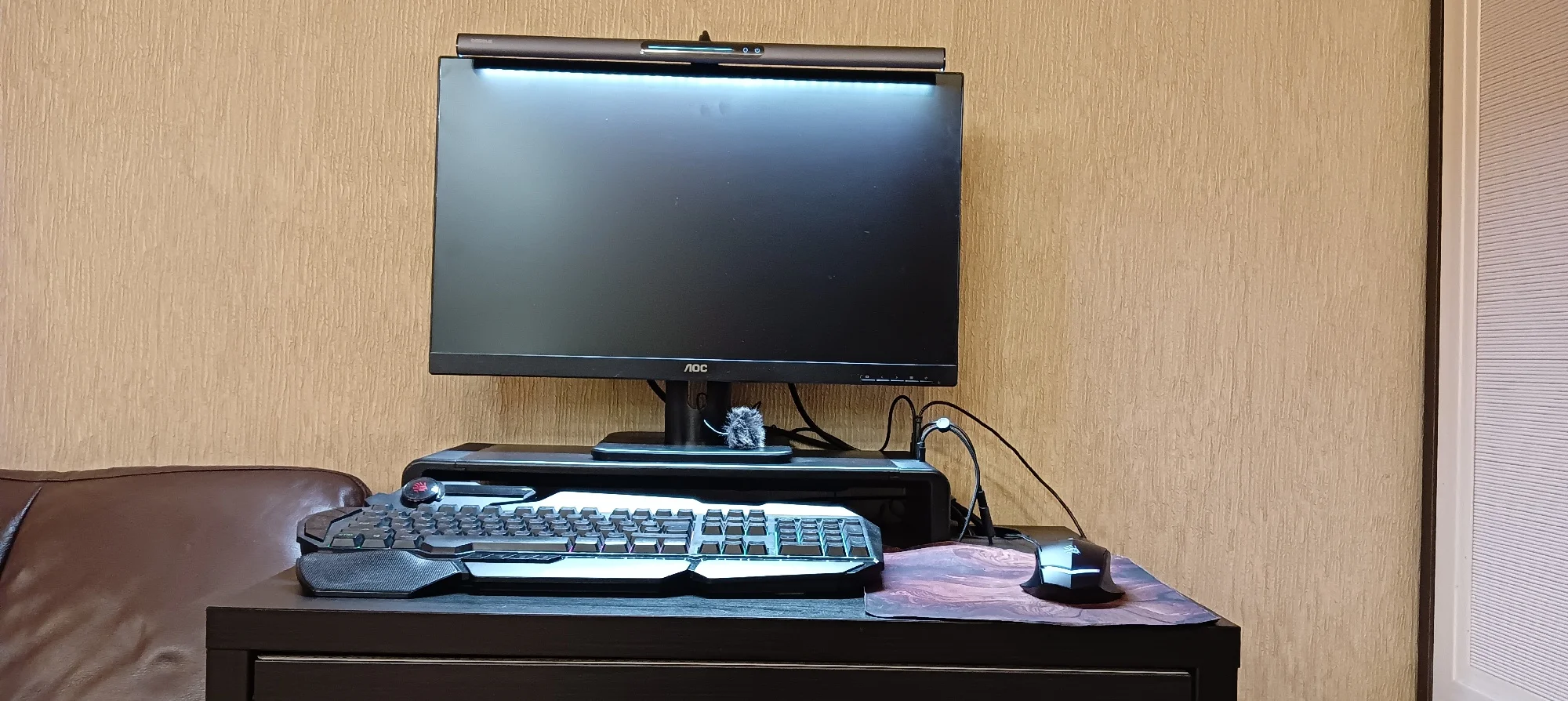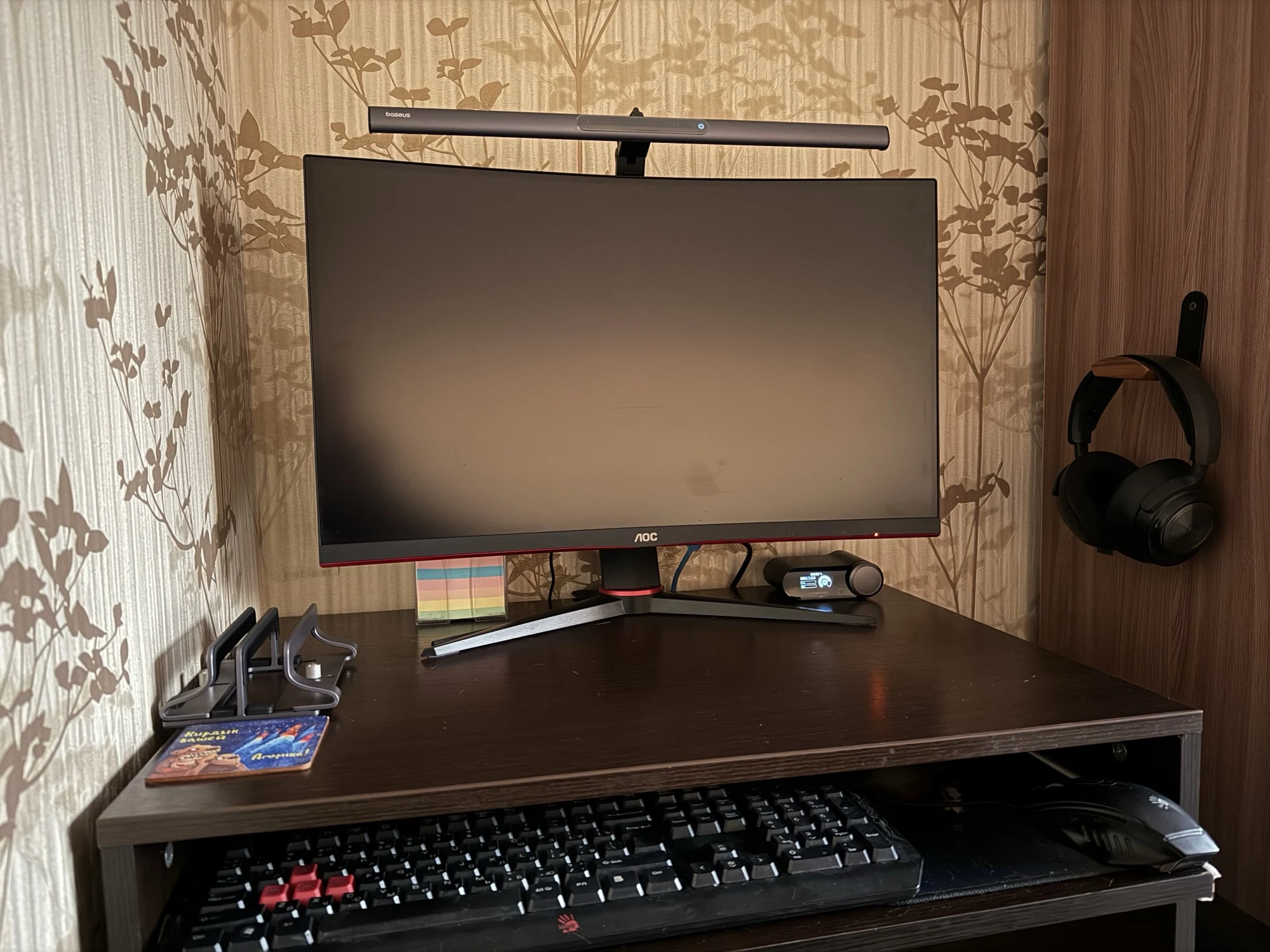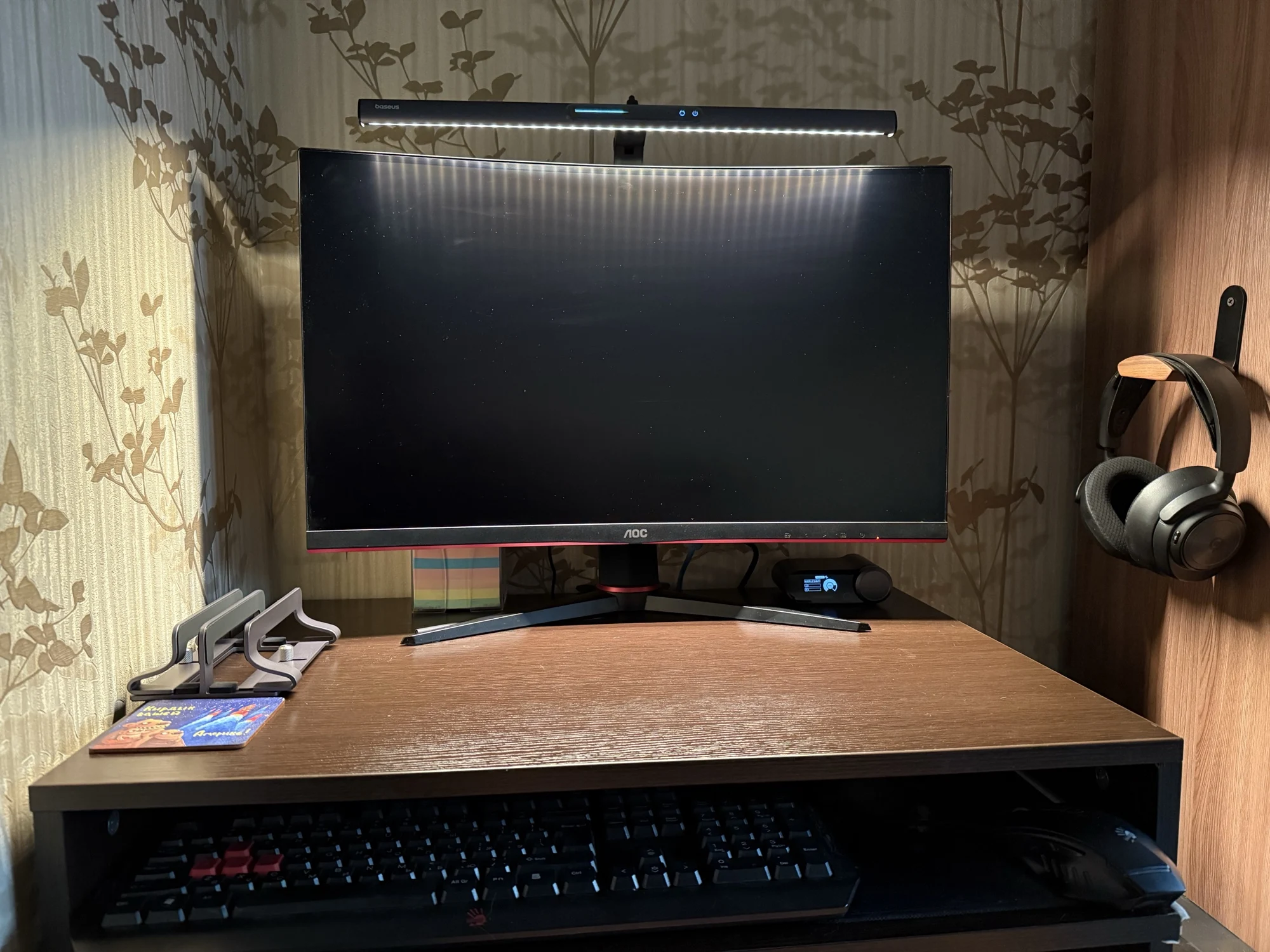 Быстрая доставка. Коробка была внутри пенопластового конверта и получила незначительные повреждения. Сама коробка довольно красивая. Материал лампы приятный, управление Интуитивно понятное. Питание подается через USB тип A (блок питания не входит в комплект), что удобно во время отключения электроэнергии в моем районе (его можно просто подключить к общему блоку питания). Я надеялся, что магнитная полоса является дополнительным монтажным решением, но это не так. В моих попытках смонтировать его способом, который я предпочитаю, я обнаружил, что простого крюка с противовесом будет достаточно (если я сделаю более постоянное решение, буду обновлять дизайн). Я нахожу ligh бросить слишком широкий, так что он ослепляет меня или выделить частицы пыли на мониторе вместе с нижней рамкой (см. Фото), который сильно неудобно и раздражает. Если вы живете в чистой среде или не против выделить пыль и нижнюю панель, если ваши обстоятельства предполагают, что вы не меняете монитор или не перемещаете этот свет, я полностью рекомендую этот продукт.