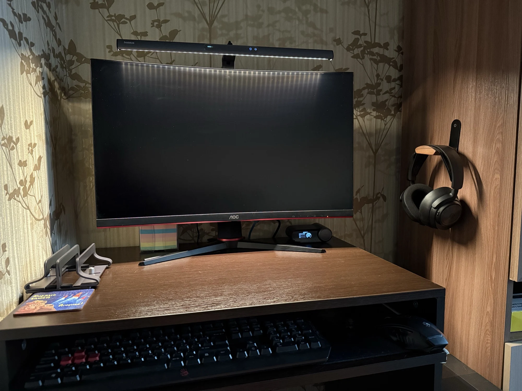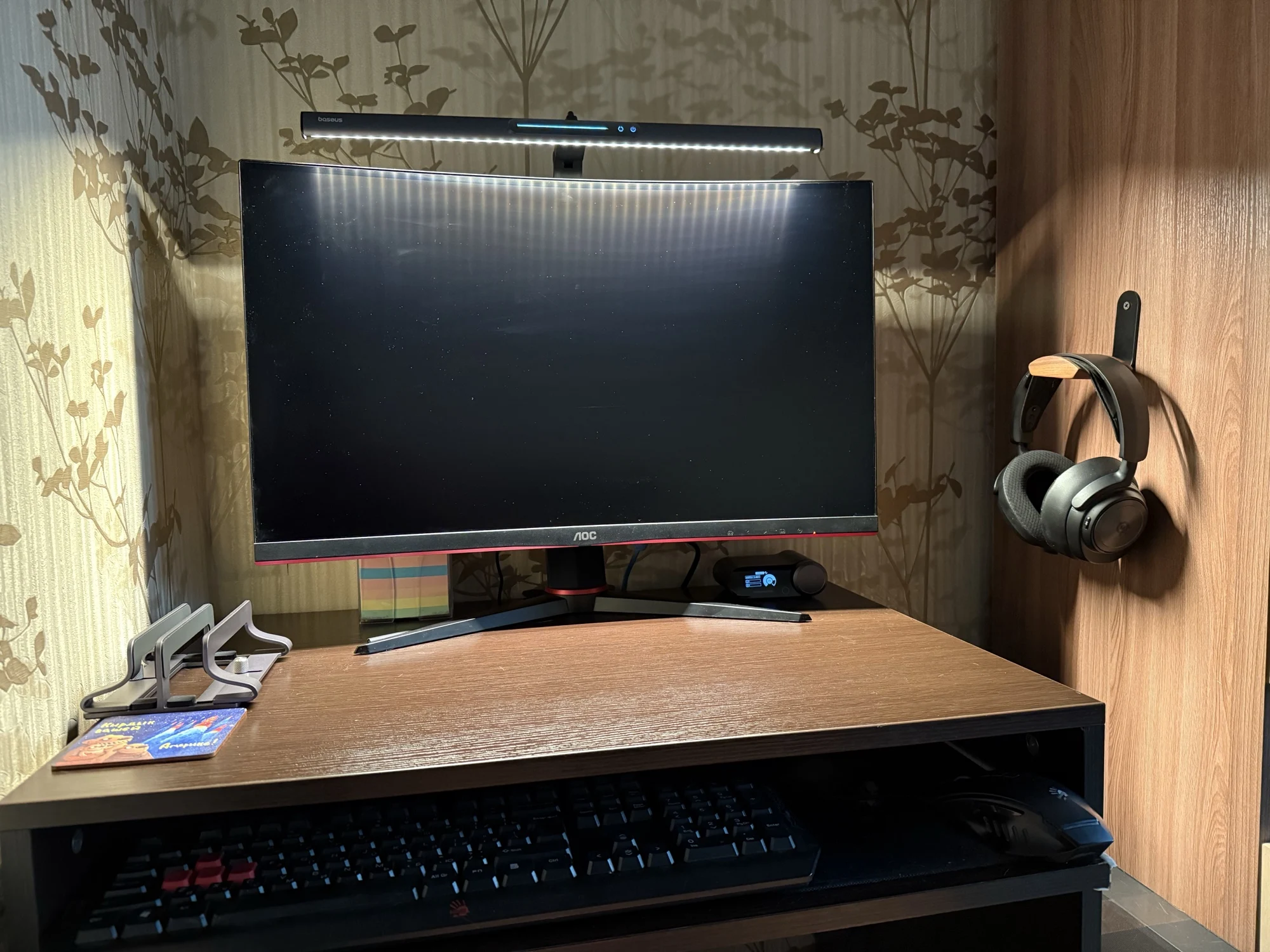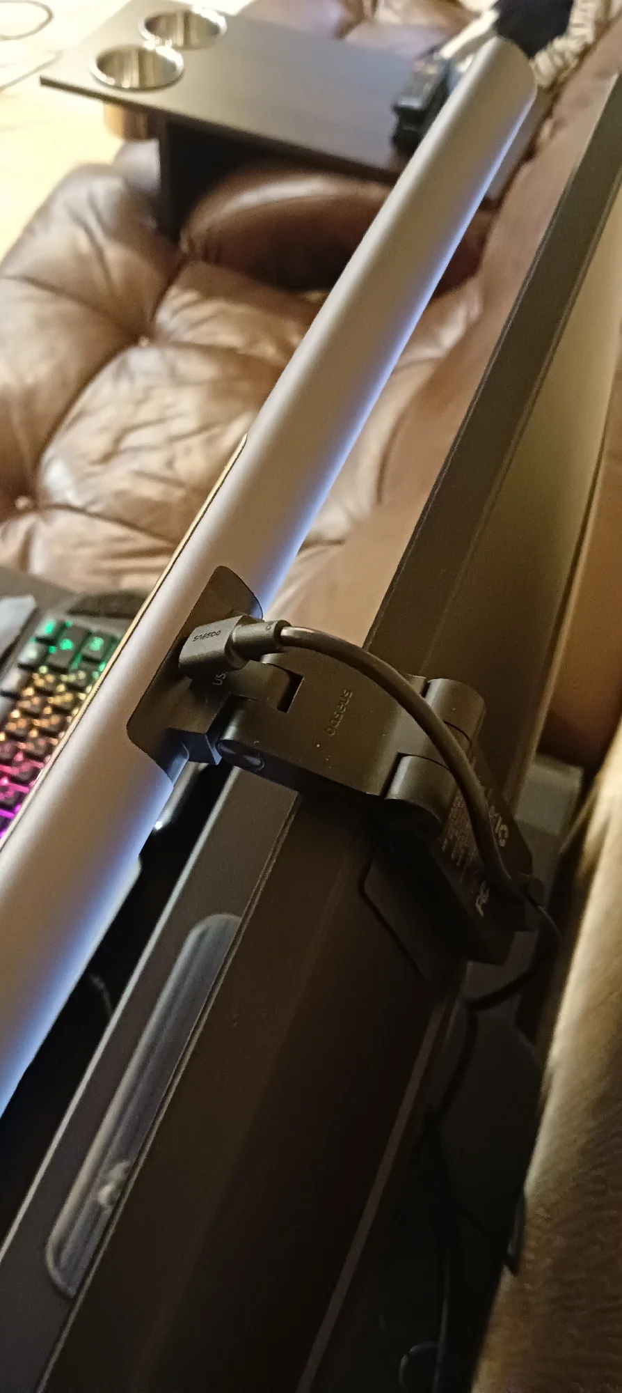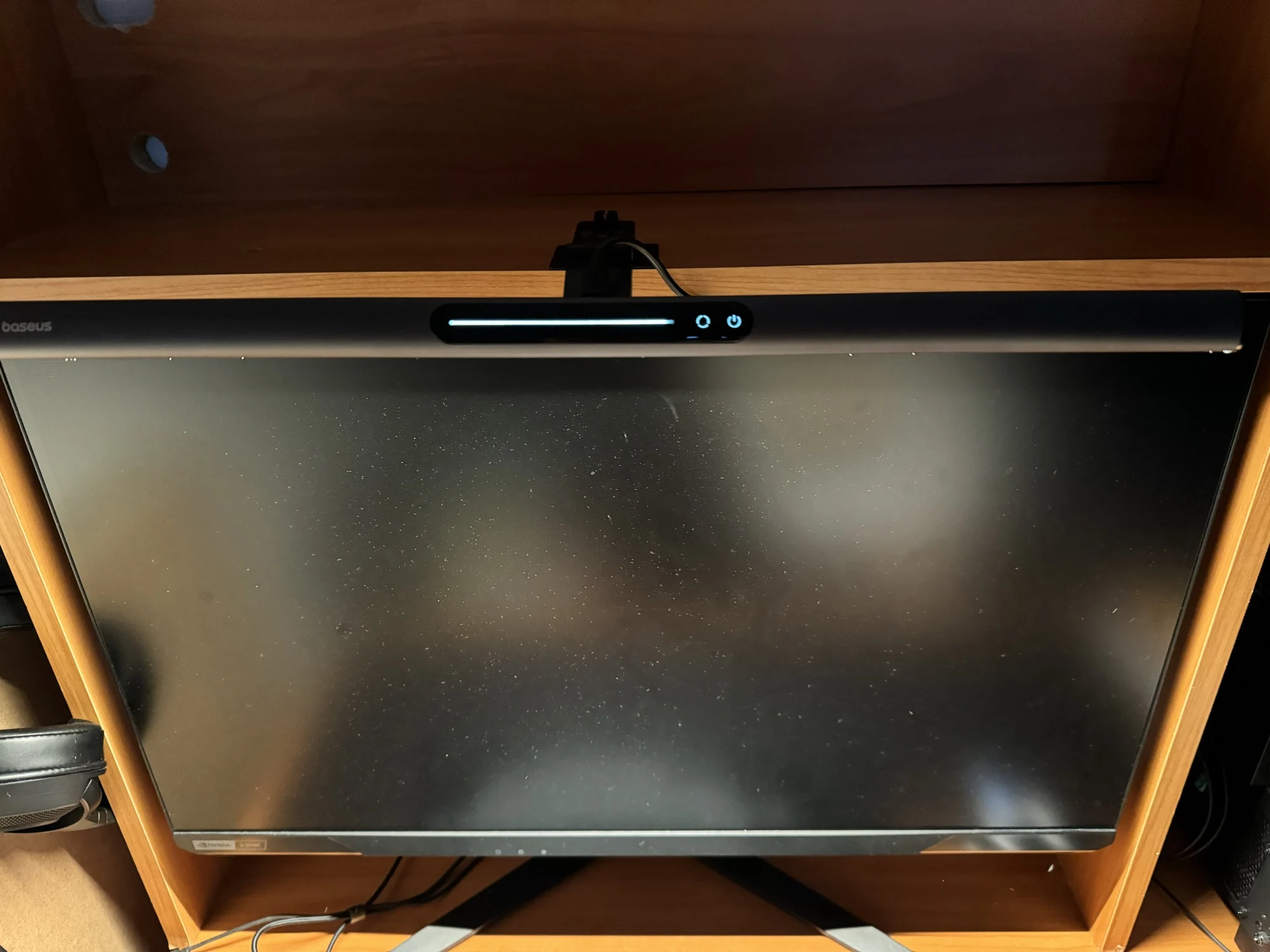 Быстрая доставка. Коробка была внутри пенопластового конверта и получила незначительные повреждения. Сама коробка довольно красивая. Материал лампы приятный, управление Интуитивно понятное. Питание подается через USB тип A (блок питания не входит в комплект), что удобно во время отключения электроэнергии в моем районе (его можно просто подключить к общему блоку питания). Я надеялся, что магнитная полоса является дополнительным монтажным решением, но это не так. В моих попытках смонтировать его способом, который я предпочитаю, я обнаружил, что простого крюка с противовесом будет достаточно (если я сделаю более постоянное решение, буду обновлять дизайн). Я нахожу ligh бросить слишком широкий, так что он ослепляет меня или выделить частицы пыли на мониторе вместе с нижней рамкой (см. Фото), который сильно неудобно и раздражает. Если вы живете в чистой среде или не против выделить пыль и нижнюю панель, если ваши обстоятельства предполагают, что вы не меняете монитор или не перемещаете этот свет, я полностью рекомендую этот продукт.