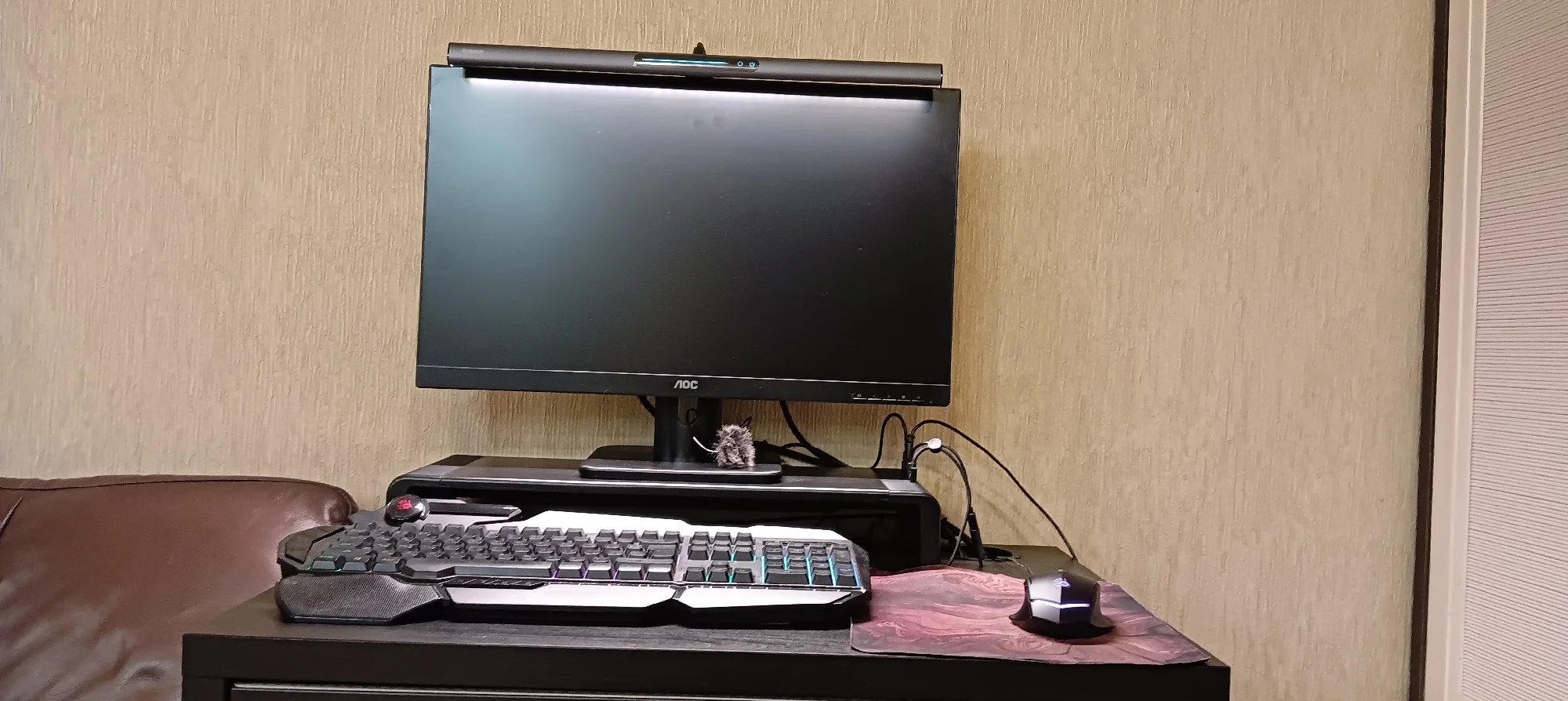 Долго думал брать или не надо, но когда установил на монитор, понял, что однозначно да, стоящая покупка, очень нравится. Можно менять теплоту света, мне понравился теплый белый, с ним и фотал. Можно уйти в хололный белый или в промежуточный между ними. можно контролировать яркость, сделал фото малой, средней и большой интенсивности, но оно не передает как видит глаз в живую. В целом простая установка, но кто перфекционист с проблемой глазомера.. может приклеить фиксатор по границе начала экрана, как сделал я😂