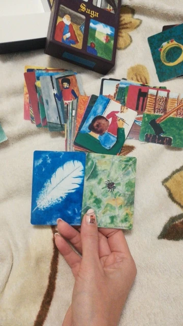Колода метафорических карт Saga за 1033 р. Пришла за месяц, отслеживалась. С оригиналом не сравнивала. Коробка немного помялась, карты небольшие, удобно брать и перебирать. Многоцелевые, для разной проблематики, изображения простые, разнообразные - свечка, кольцо, гроб, каша на столе, сова, отрубленная голова, мешочек, флейта.