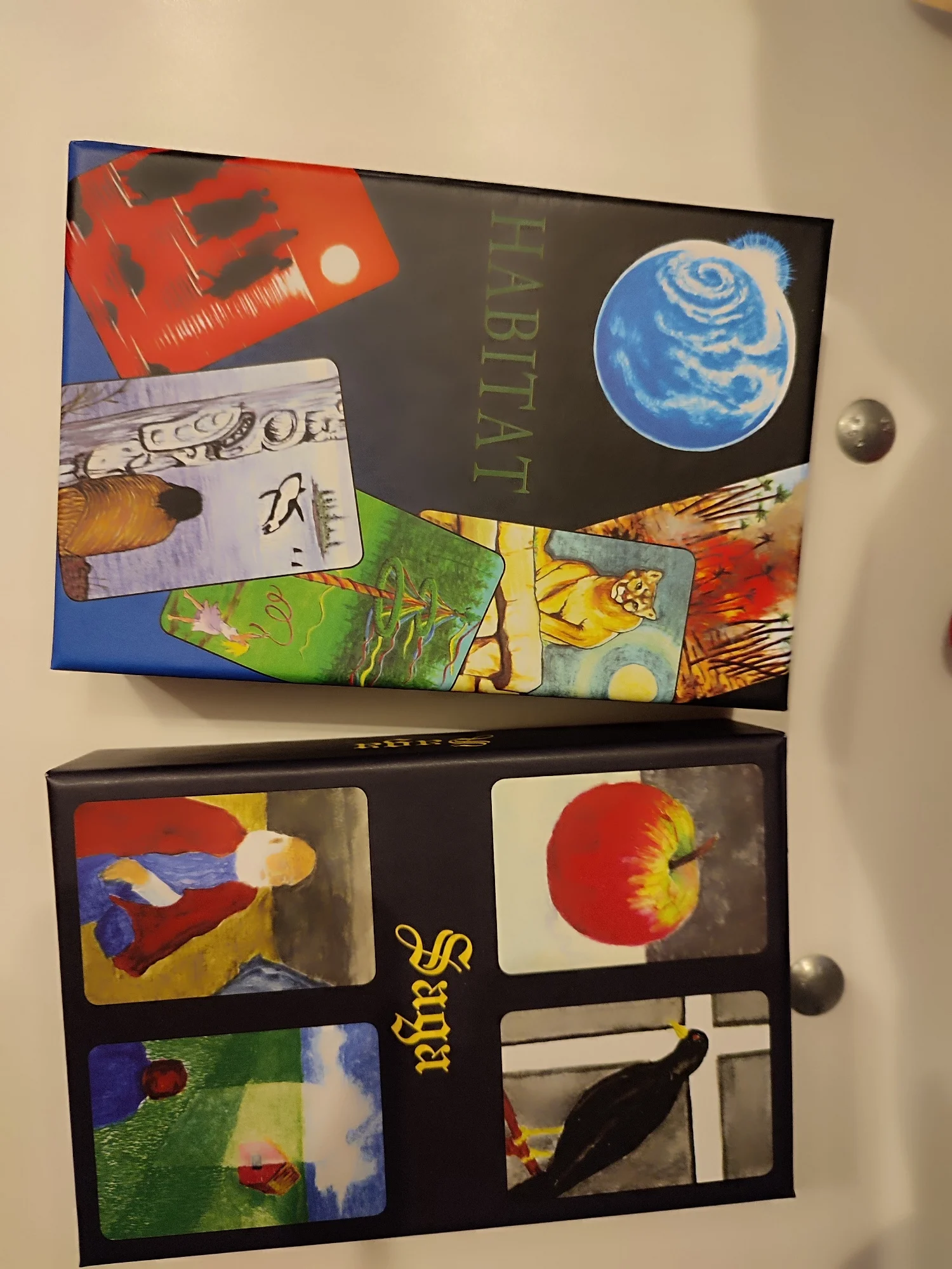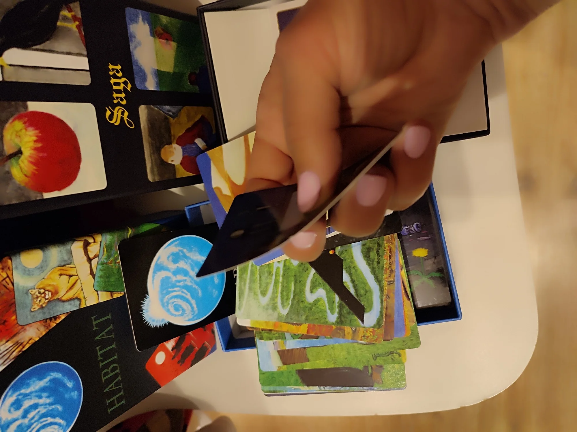 Хорошая колода в приличном исполнении! Ламинация тоже чуть шероховатая, но не такая, как у Хабитат. Цвет коробки не ярко жёлтый, а чуть с зеленцой. Оригинальных карт не видела, поэтому пока не с чем сравнить. Этим экземпляром довольна! Рекомендую!