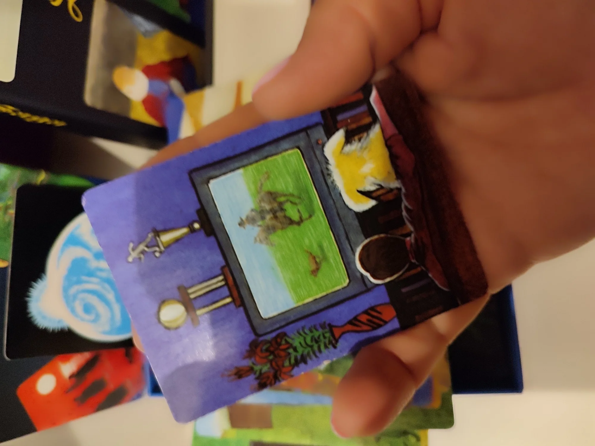 хорошего качества, неплохие рисунки, отличная упаковка. Сами карточки небольшие, как карты наши обычные, на пол-ладони приблизительно, рисунки чёткие, глянцевый картон не толстый. За 800₽ меня вполне устроило.RU s. 4 апреля 2023