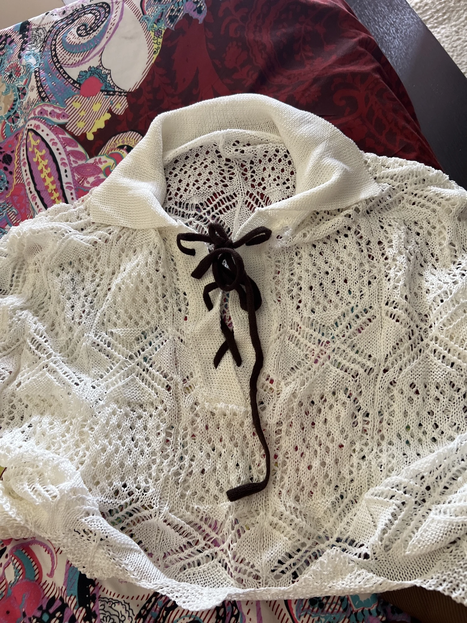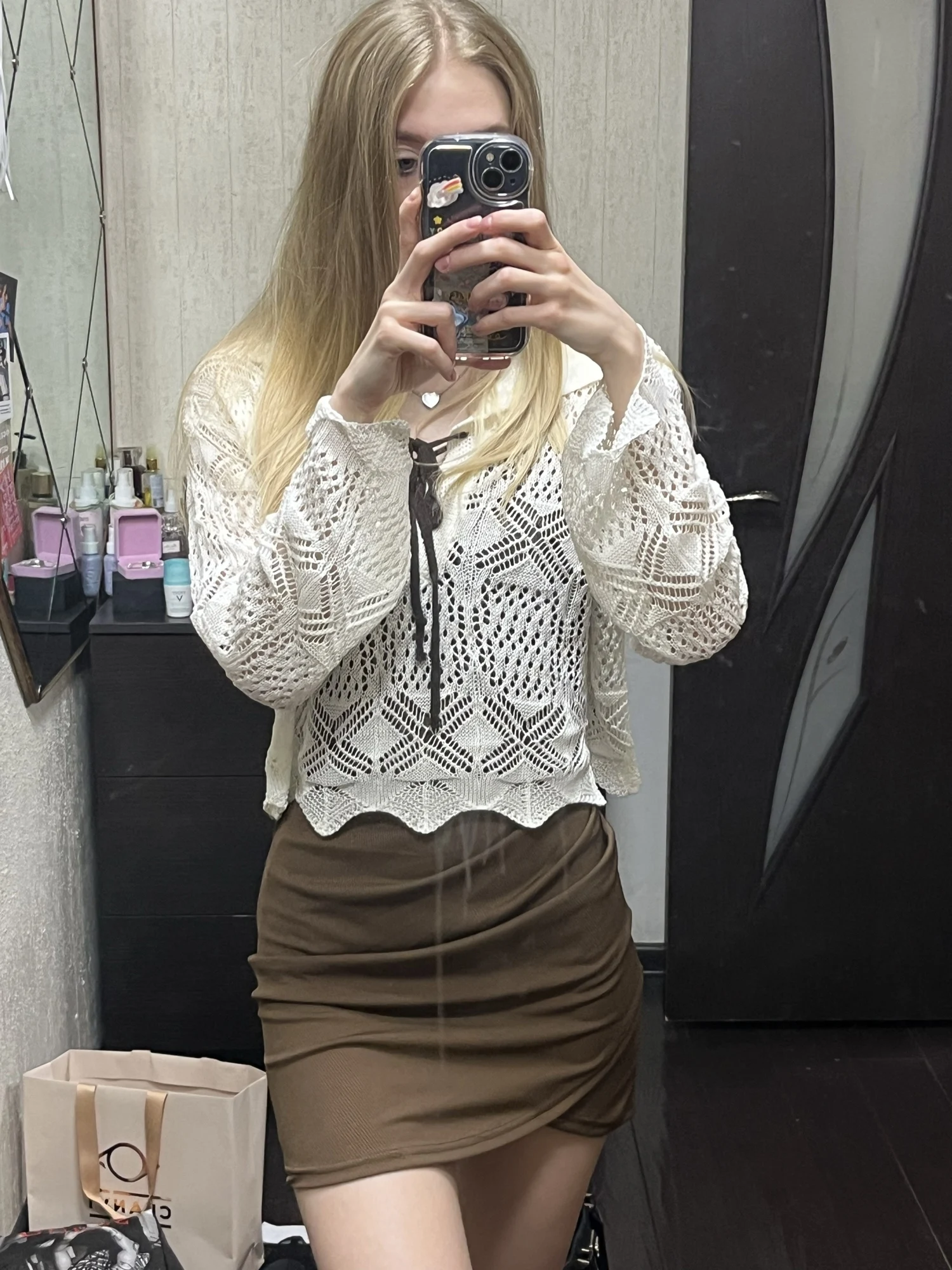 супер комплект!!! на рост 170, вес 50 заказала L (посоветовал продавец) В общем подошло шикарно, но в талии большевато, поэтому появляются складки. Ткань синтетика и не тянется, в рубчик. Накидка (??) вязаная, очень крутая и приятная. Кое где торчат нитки, но не критично. на лето самое то!!???? за фотку не судите, я живу в общаге????