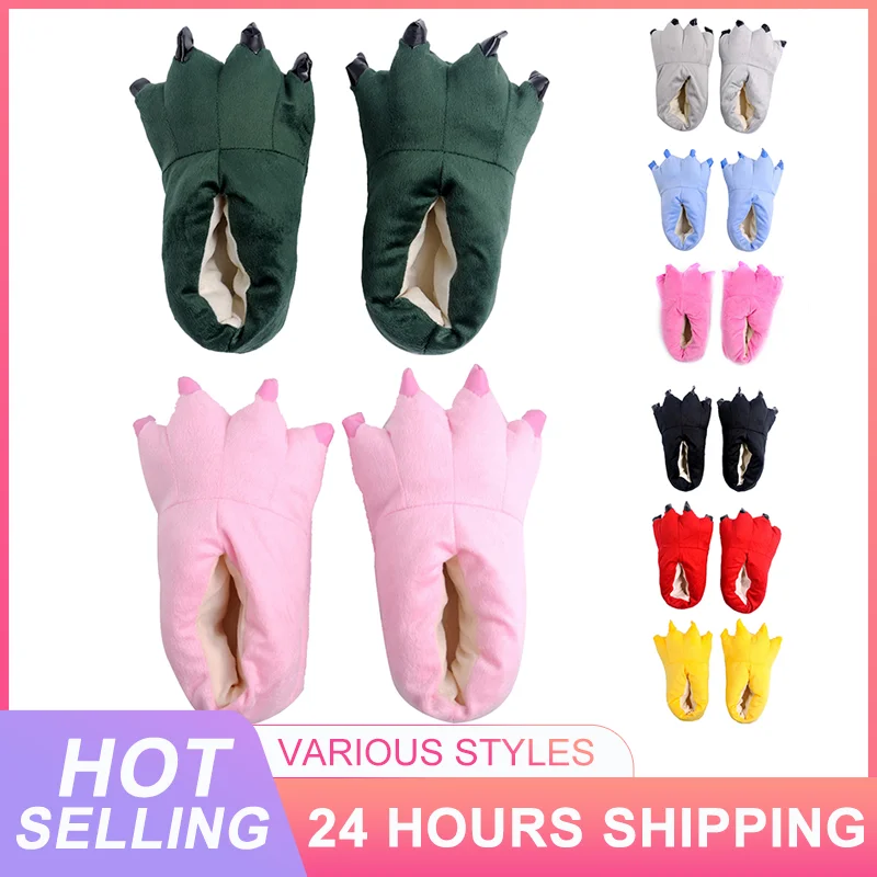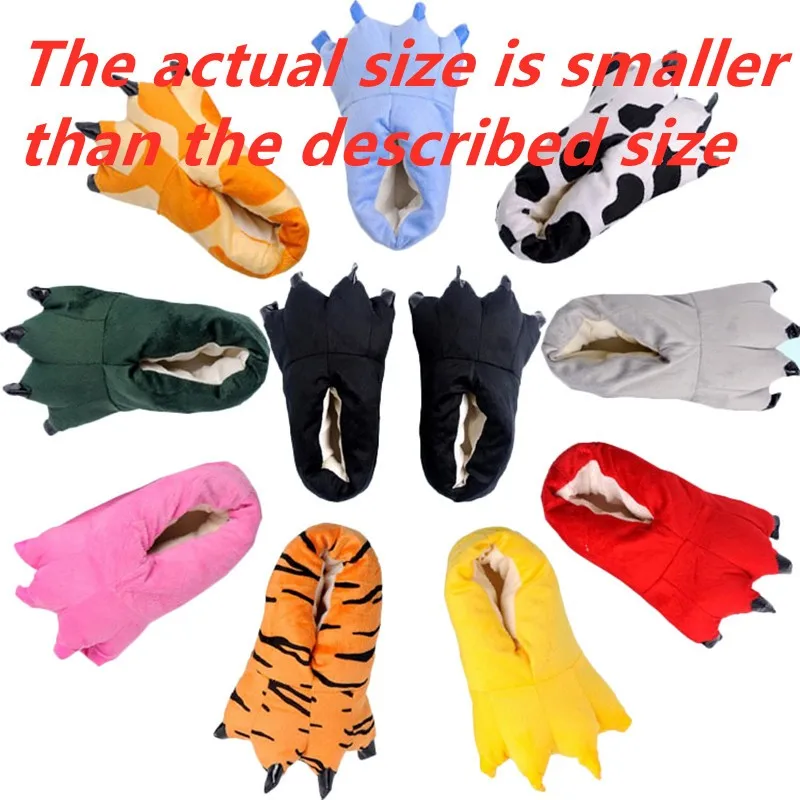 Зимние теплые тапочки для дома, мягкие тапочки для пола, смешные рождественские плюшевые домашние тапочки унисекс с животными, монстром, динозавром, коготь