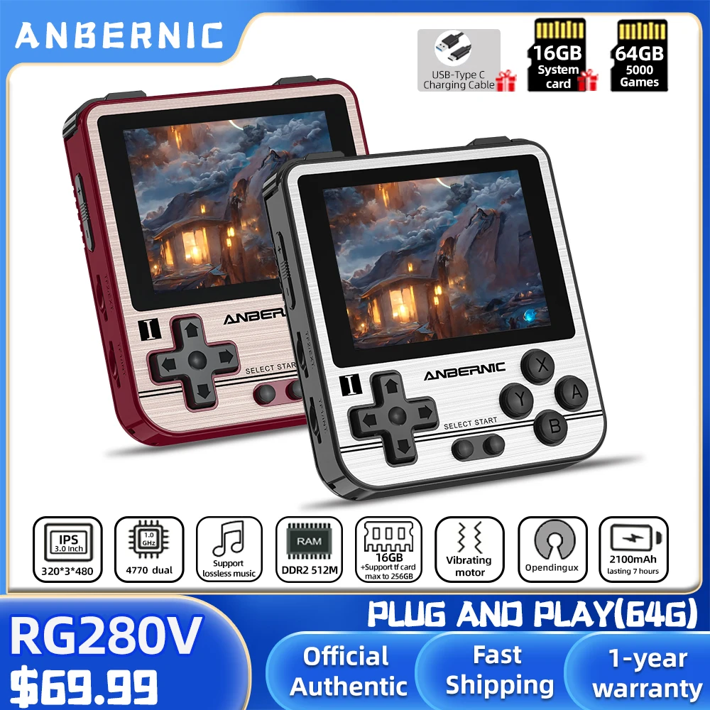 ANBERNIC RG280V Ретро игры 16G/64G-5000 игры 2,8 дюймов IPS экран Ретро портативная мини портативная игровая консоль подарок для детей 280V